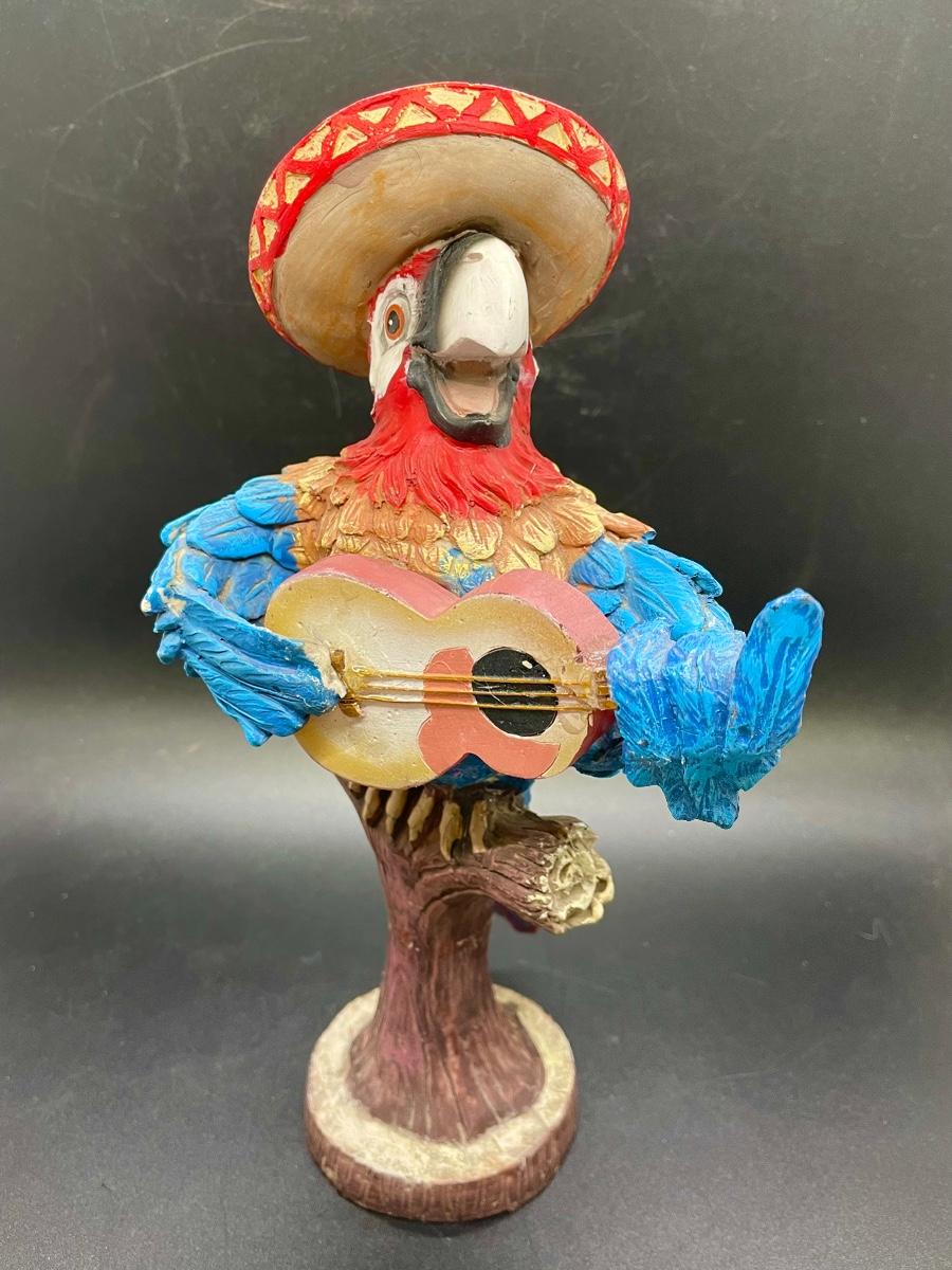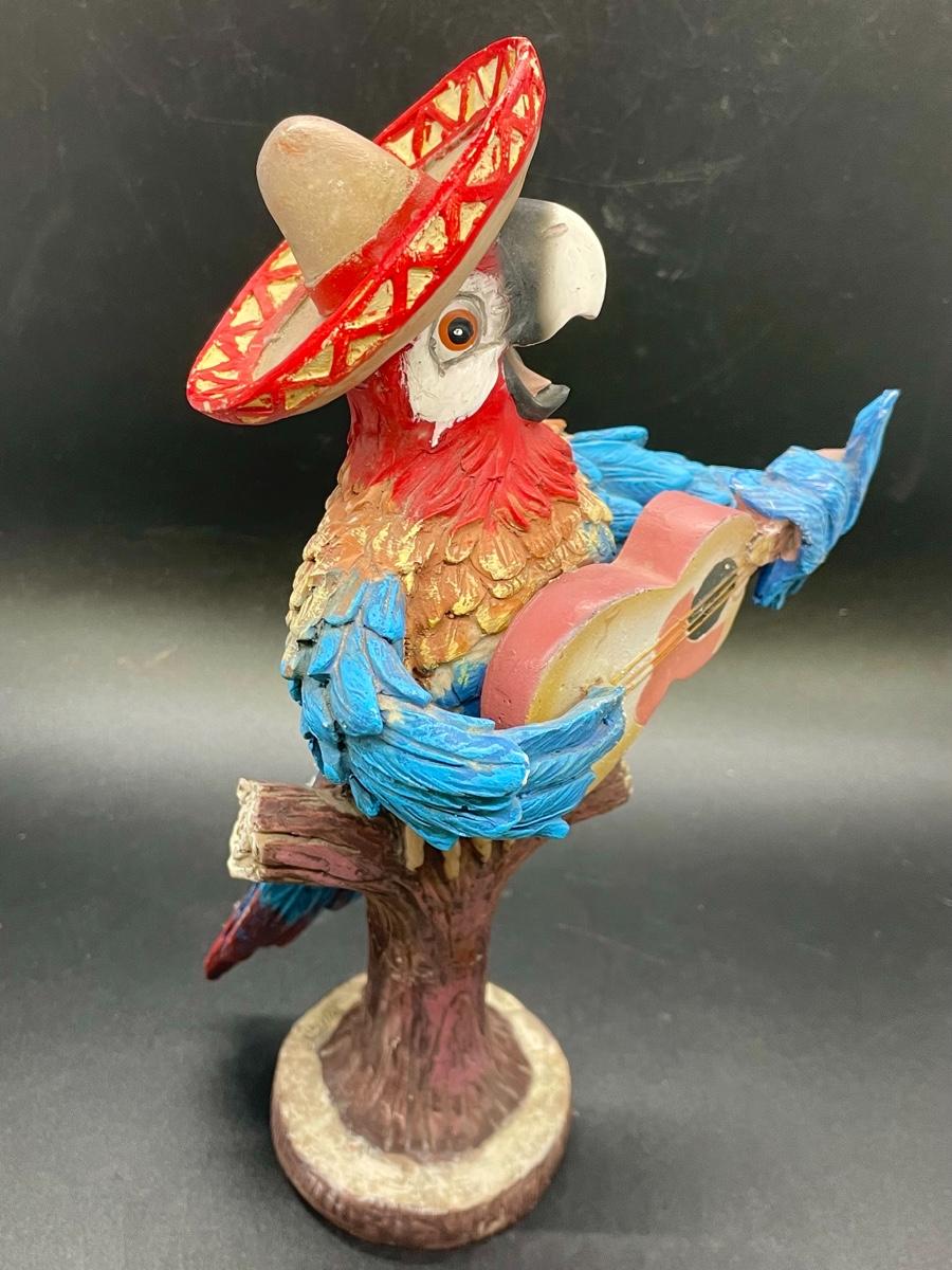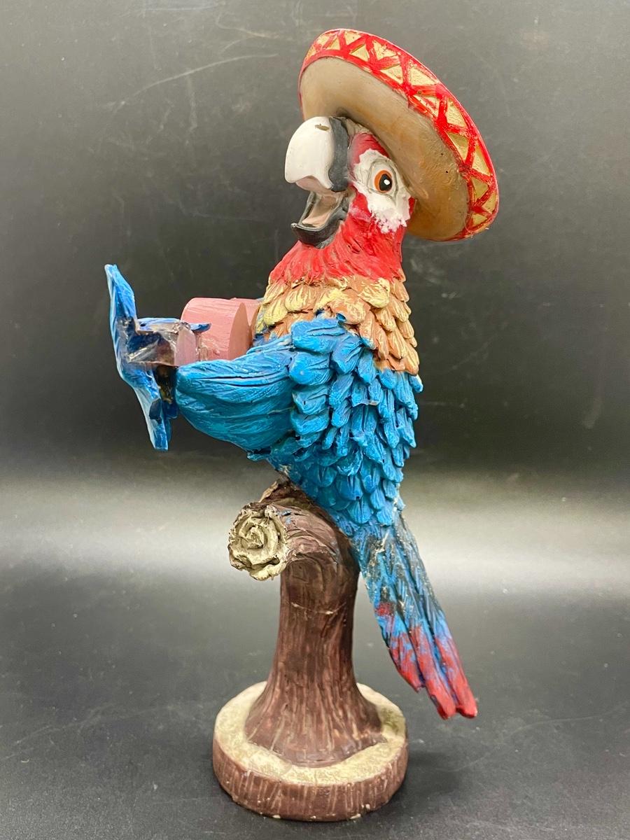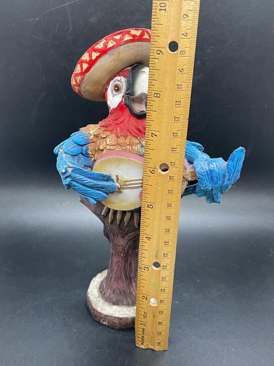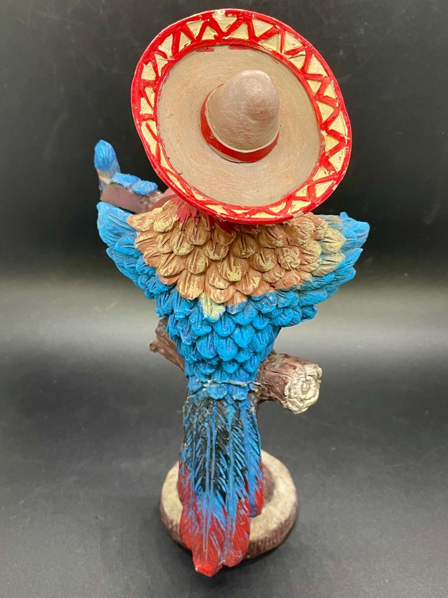 Battery Operated Parrot Wearing a Sombrero Statue Figurine