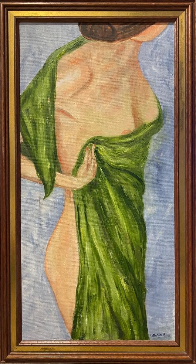 Vintage Oil on Canvas, Untitled Partial Nude Art by Dorothy Walsh - 14.5" W x 26.5" T. Signed and Framed