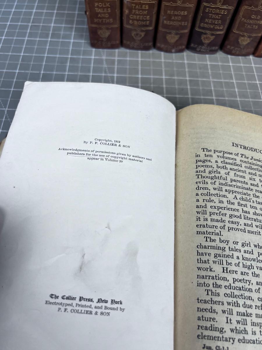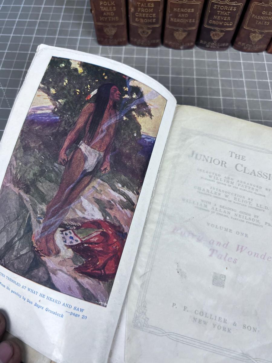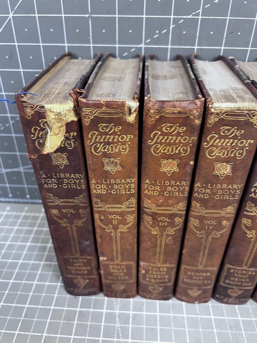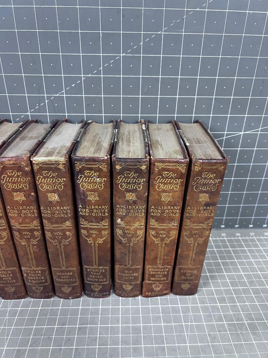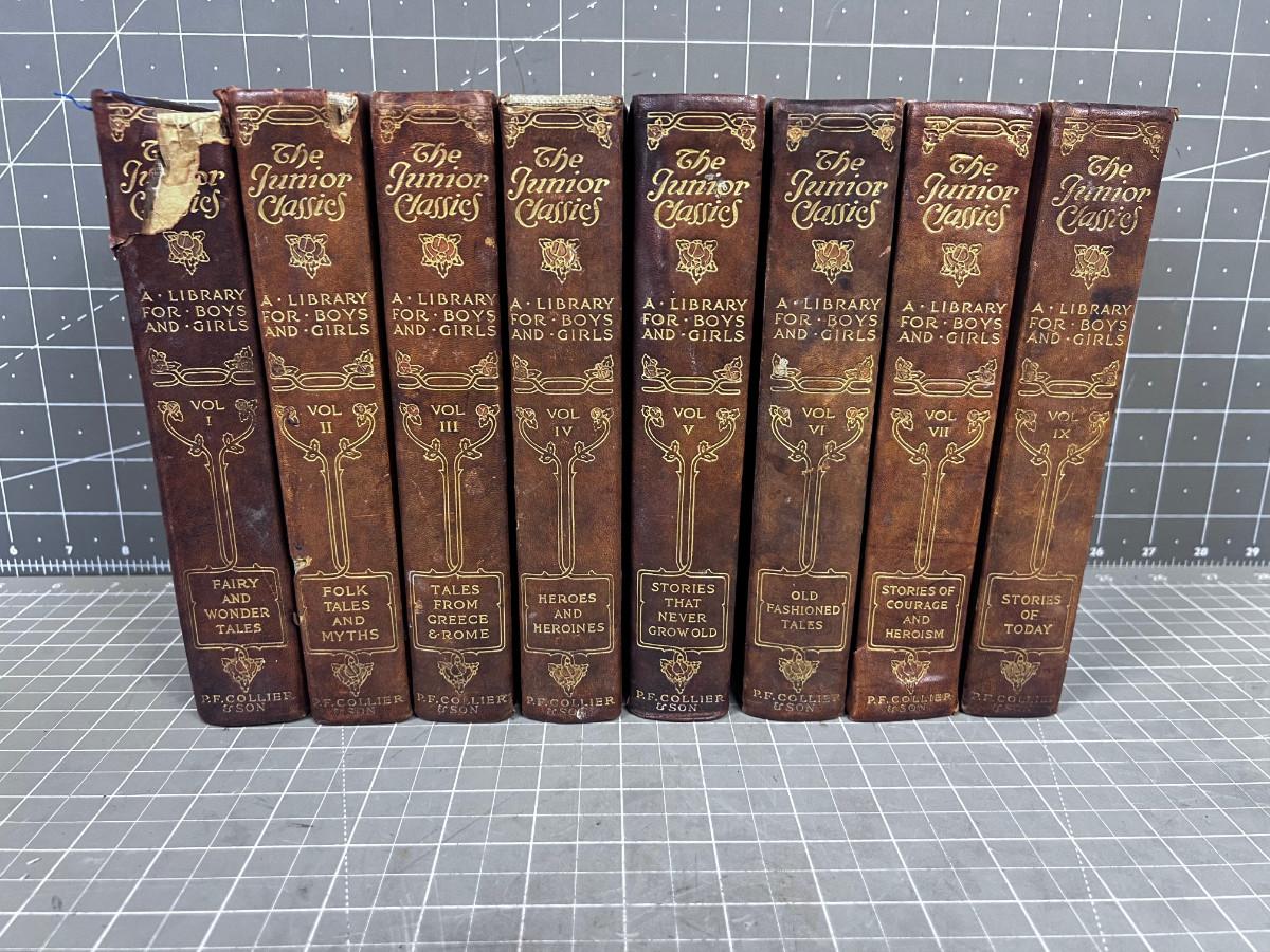 Partial Set of the Junior Classics, Leather Bound, Dated 1912 Volumes 1-7 and 9