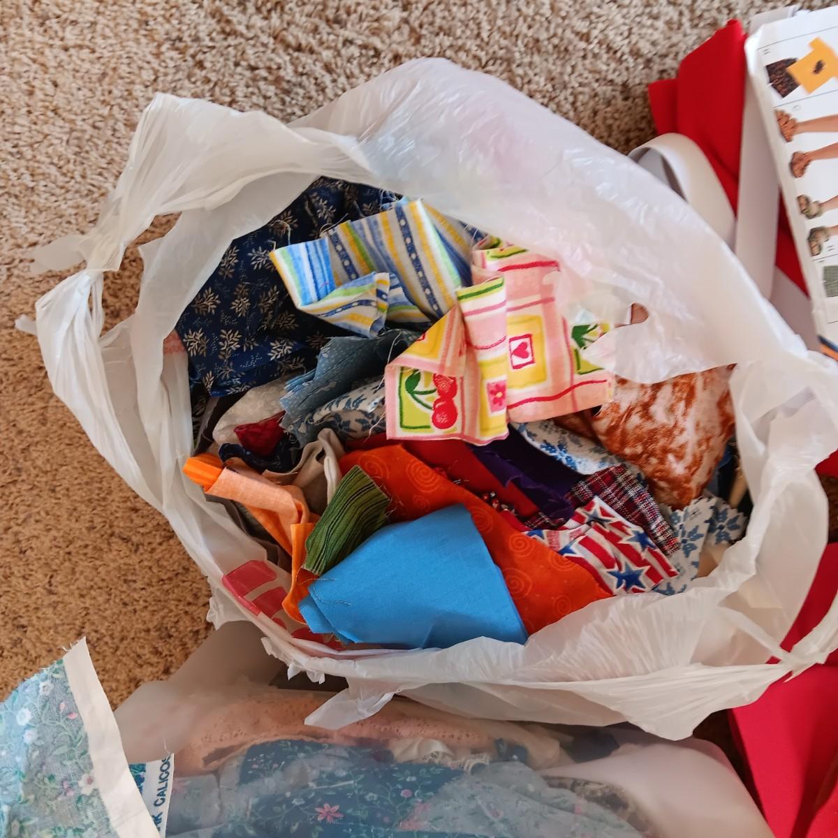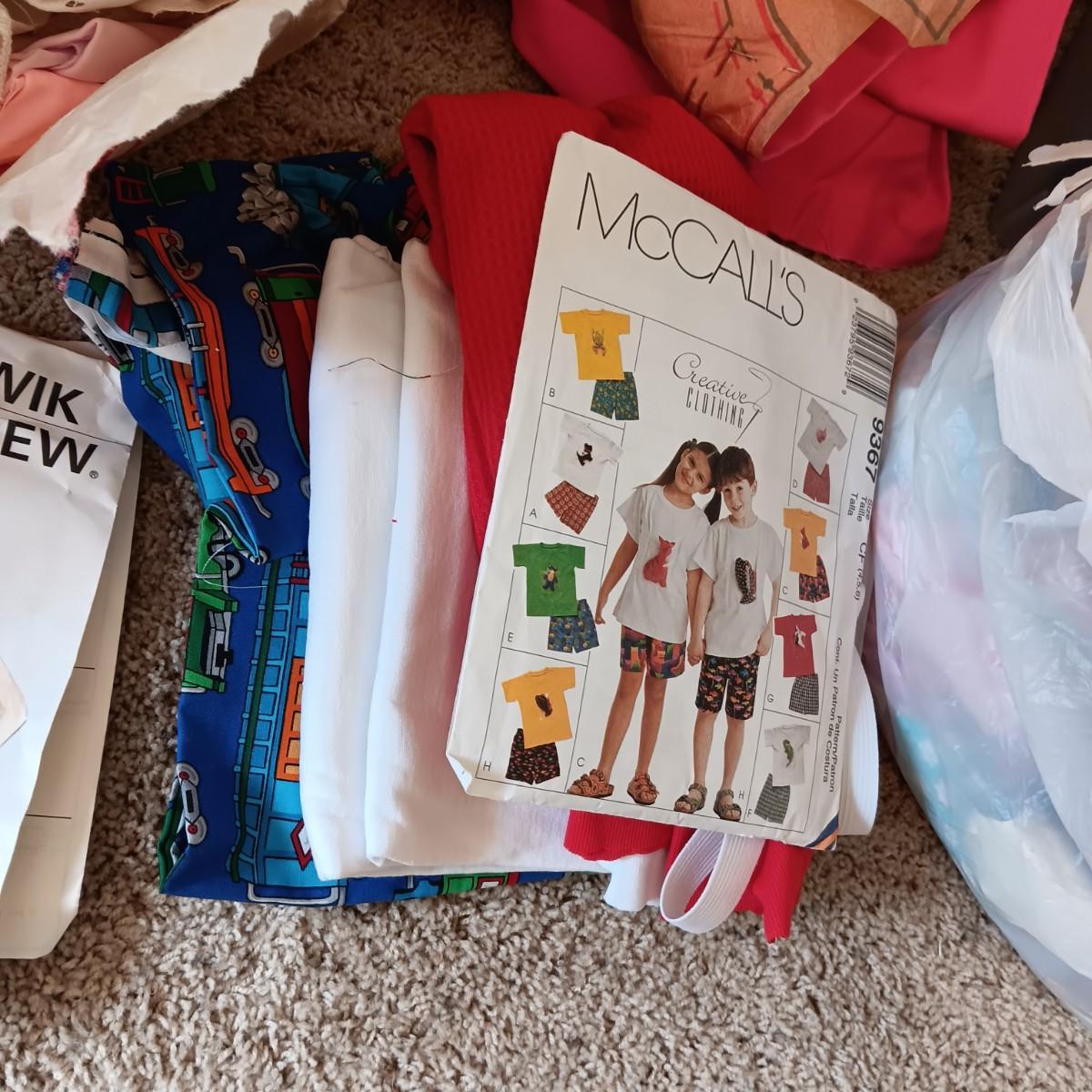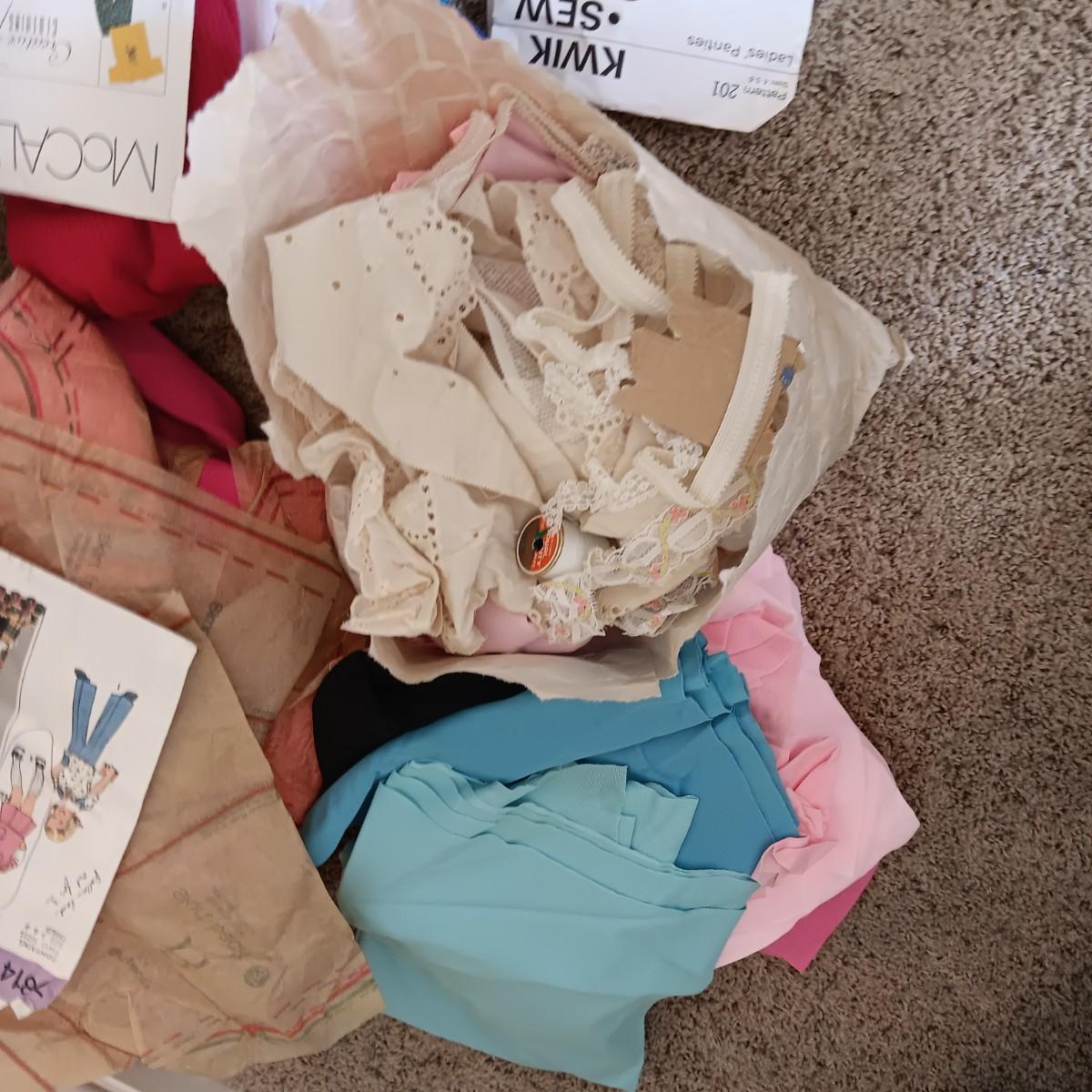 PARTIALLY COMPLETED SEWING PROJECTS AND SCRAP MATERRIAL