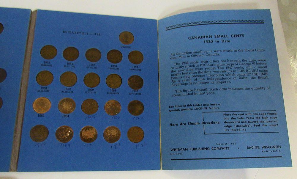 Partially Full Canadian Penny Coin Book, 1920-1972, Circulated VG-F