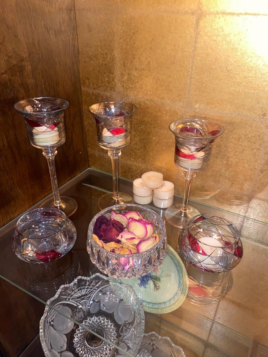 PARTY LITE CANDLE HOLDERS AND CRYSTAL BOWL