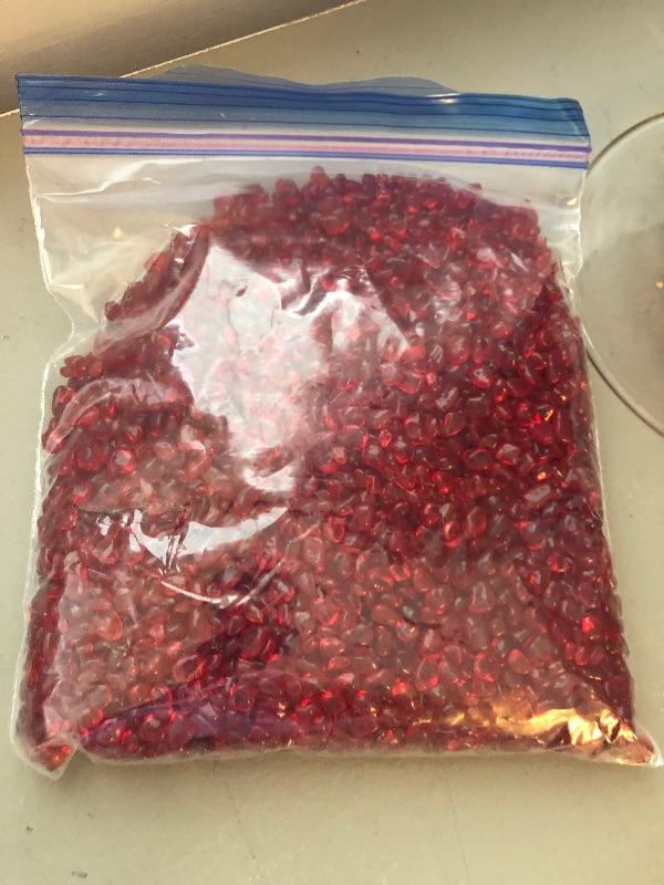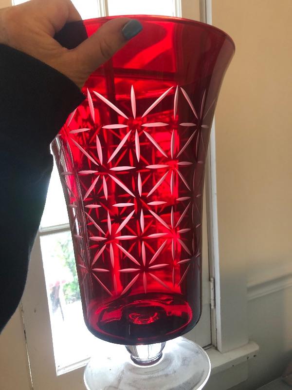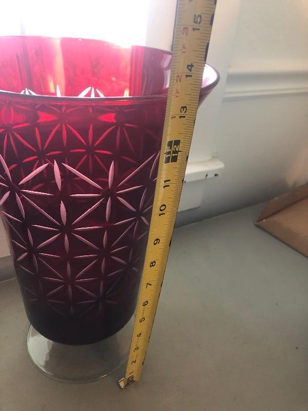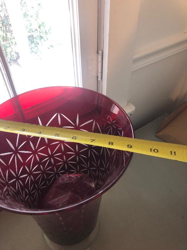 This is a beautiful mulberry red vase with red rocks which are in a bag - this piece is in its original box