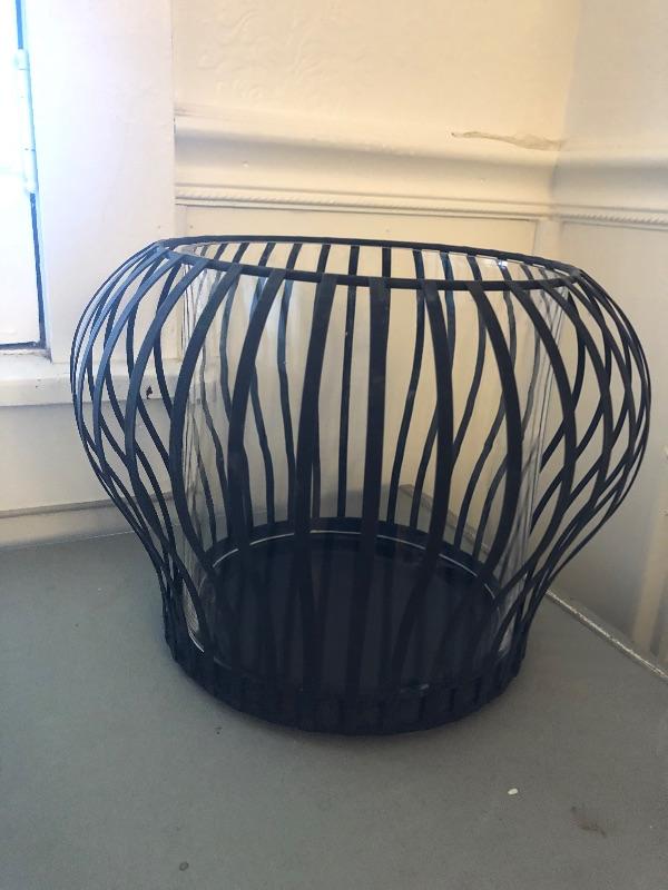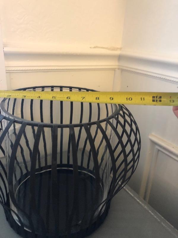 New in box . Metal with glass all the way around great for candles..... glass globe is removal