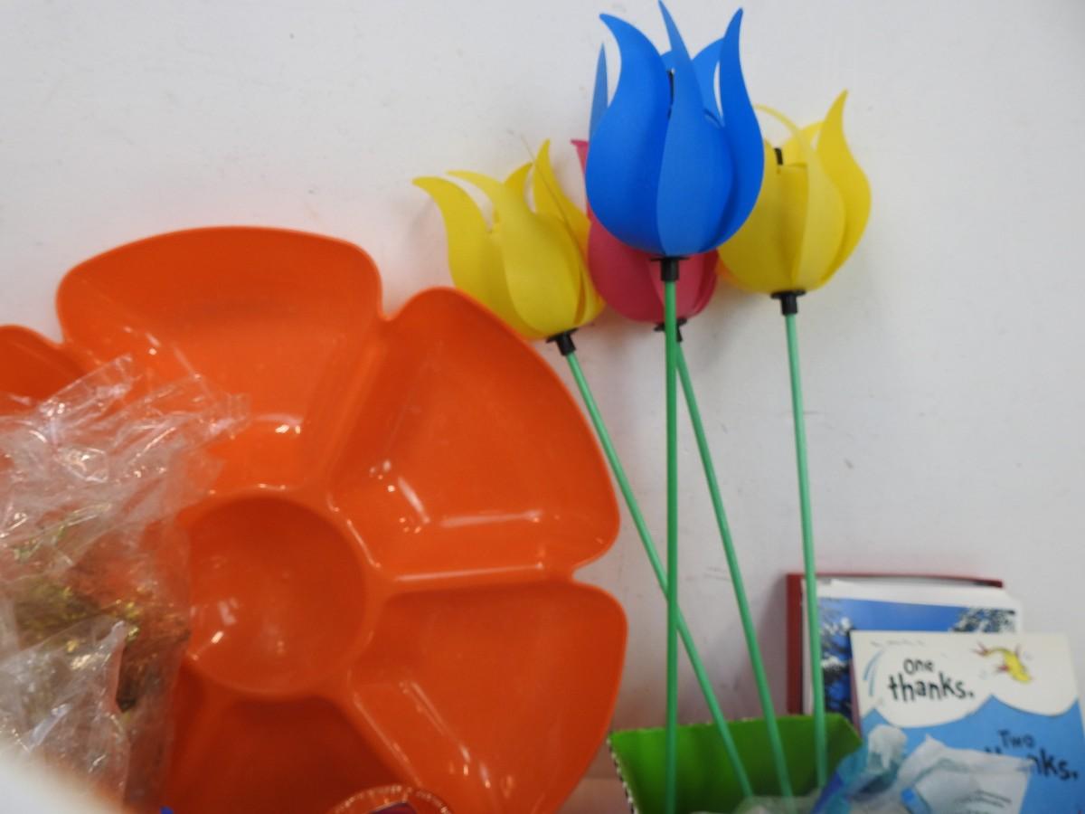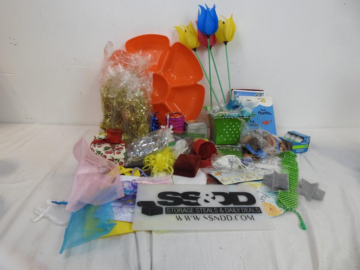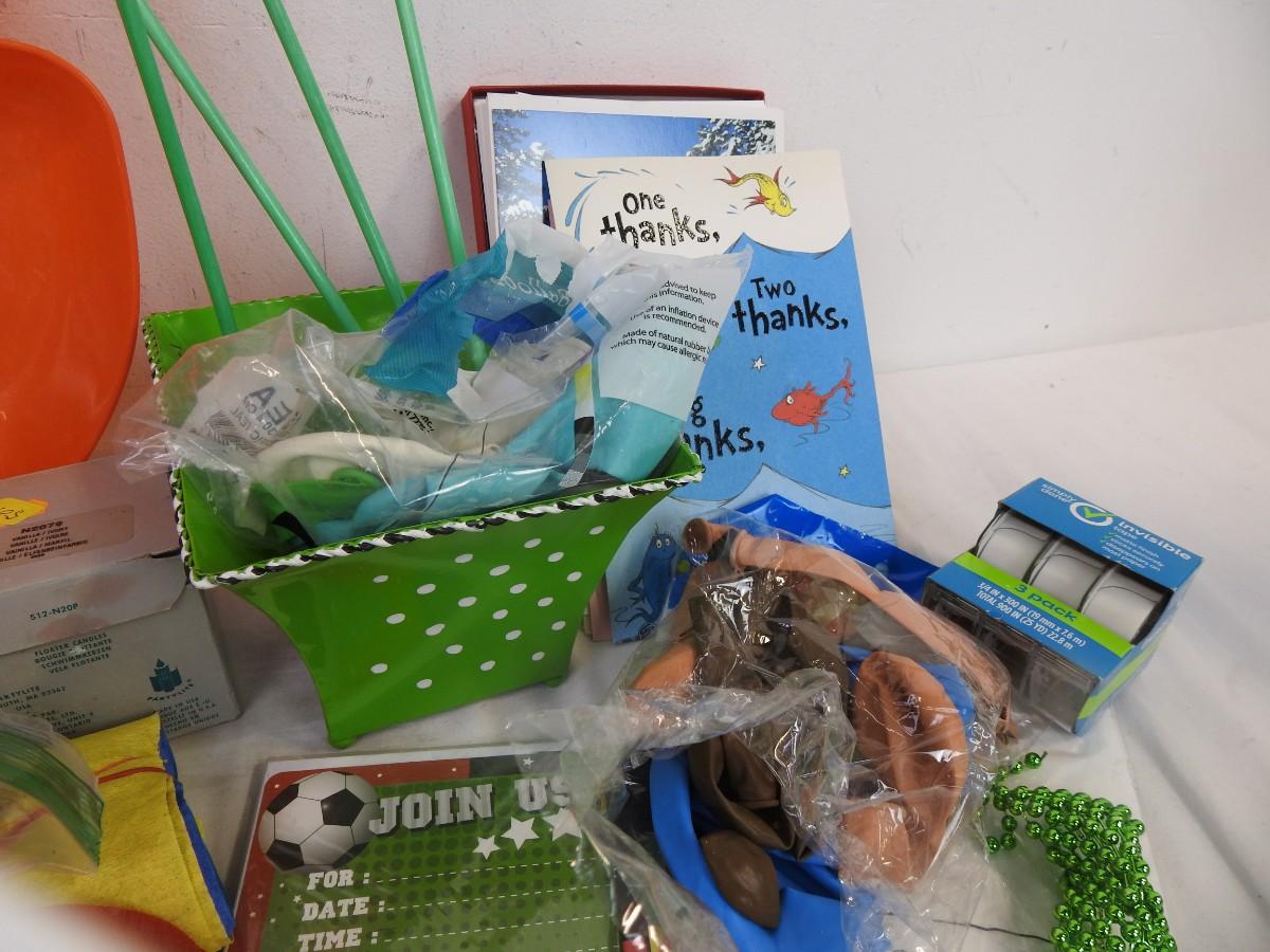 Large Party lot: Balloons, balloon weights wrapping, decorations, cards, tulip pinwheels