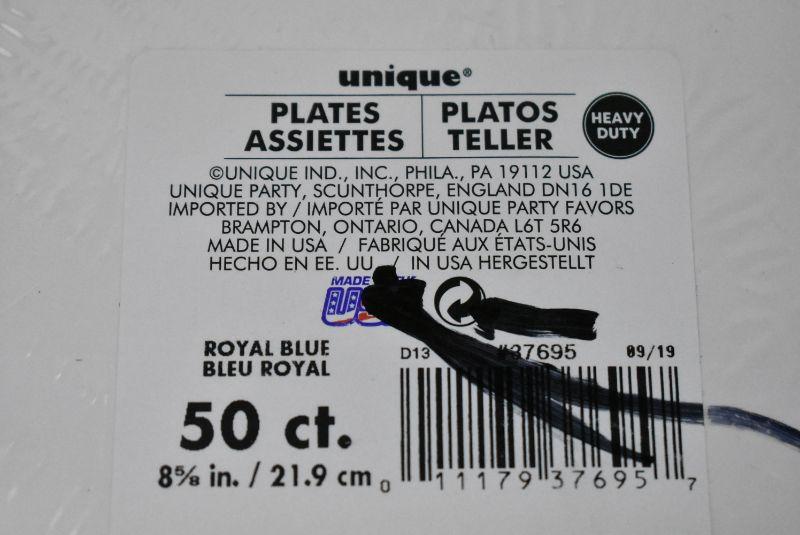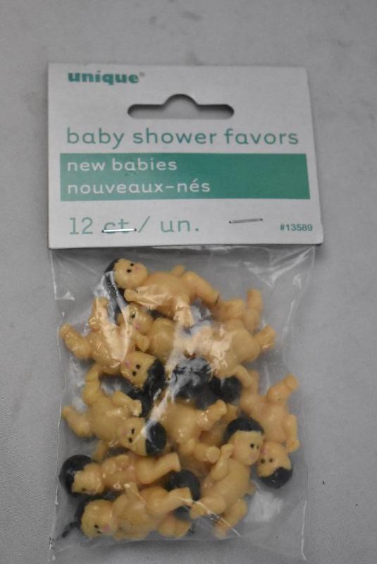 Light Blue Paper Dessert Plates 7in 50ct, (2)Assorted Plastic Silverware for 6 Metallic 18pc, Mini Plastic Babies Baby Shower Favor Charms, Royal Blue Paper Dinner Plates 9in 50ct, (2) White Plastic Party Tablecloth 108 x 54in, Silver Plastic Party Table Skirt, 14ft - New