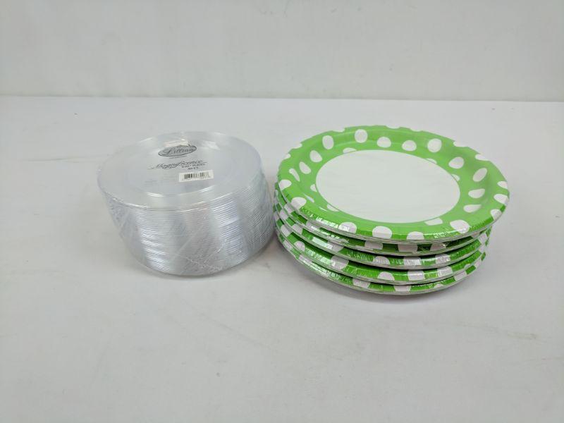 Party Plates, 5 pks of 8 Lime Green Polka Dot Plates & 40ct Plastic Plates - New