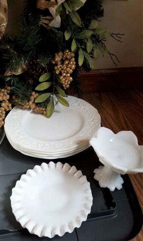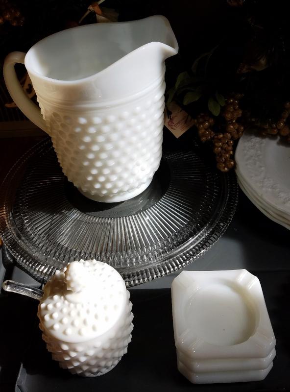 Pictures, plates, ashtray, candy dishes, see pictures. Quite a variety most welcoming to hang in the front door.