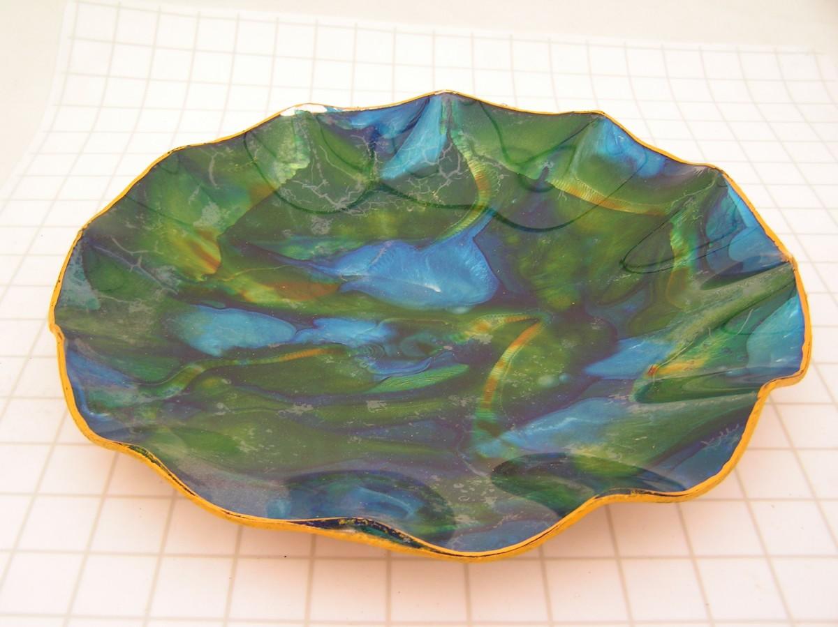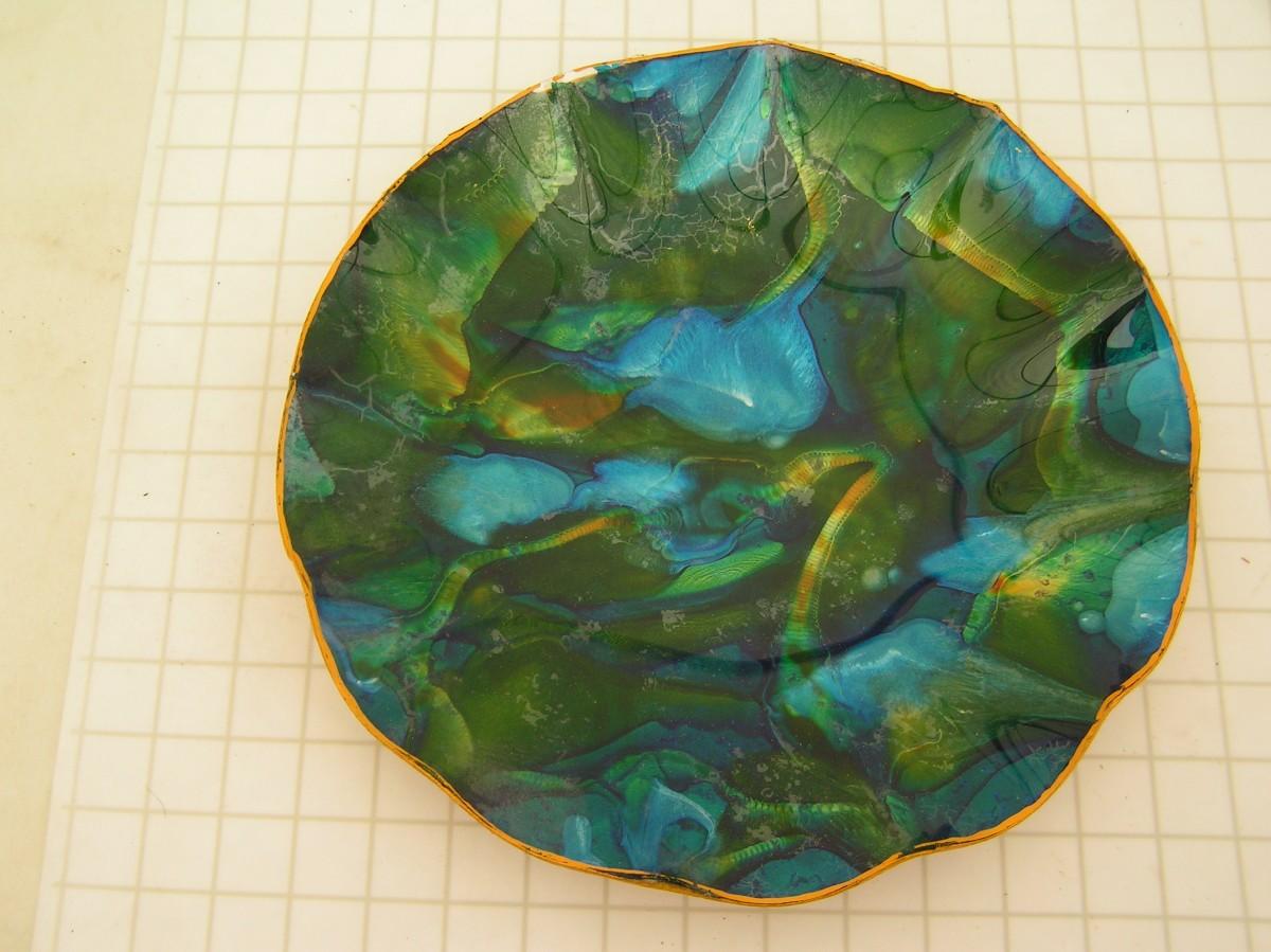 Party snack/grazing food serving dish/platter. Plastic surface. Colorful but stating to de-laminate. About 12" diameter.