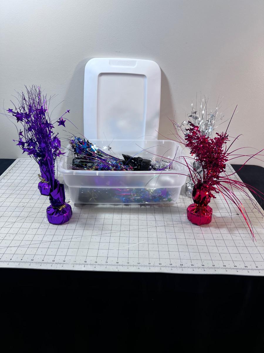Party Sparkle Centerpieces or Balloon Holders (11) plus tub