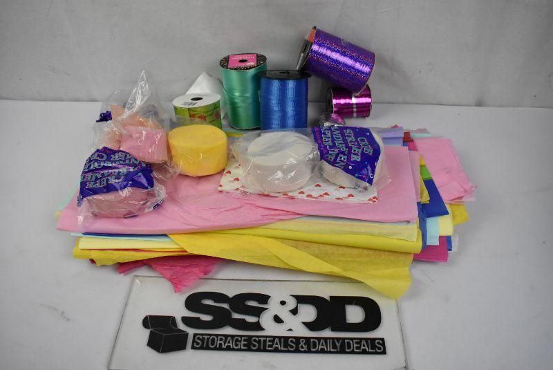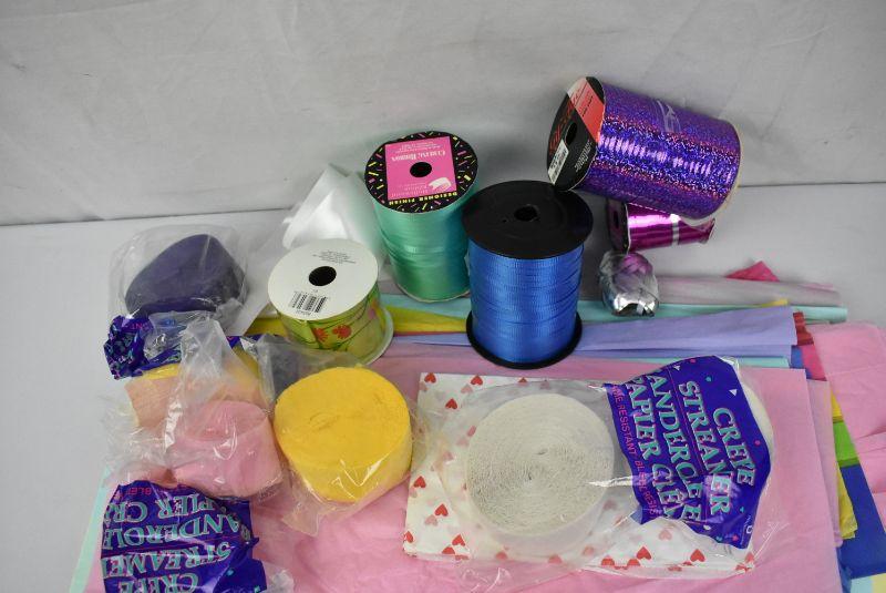 Party/Gift Wrap Lot: Tissue Paper, Ribbon, & Crepe Paper