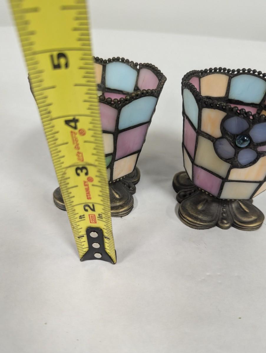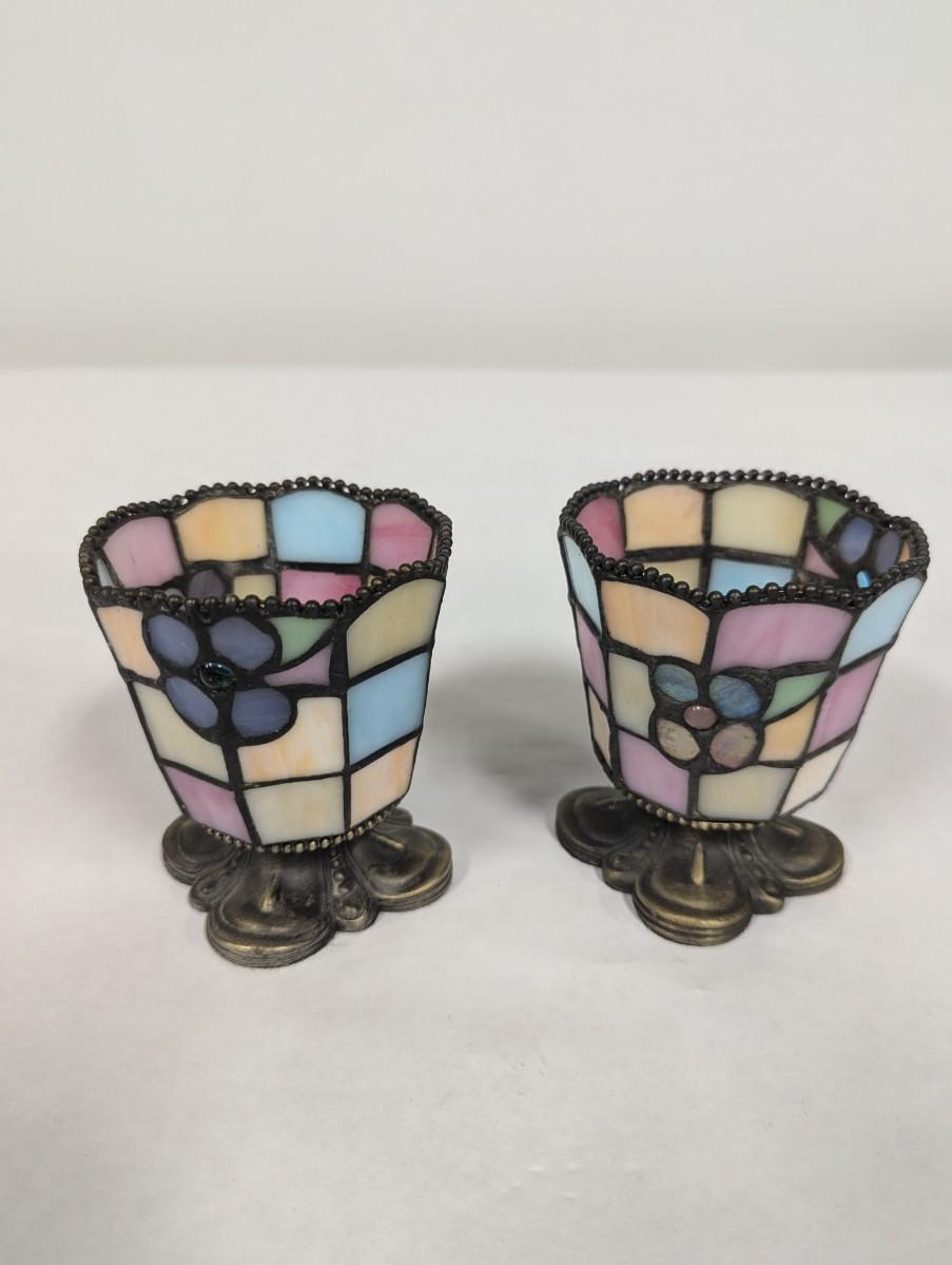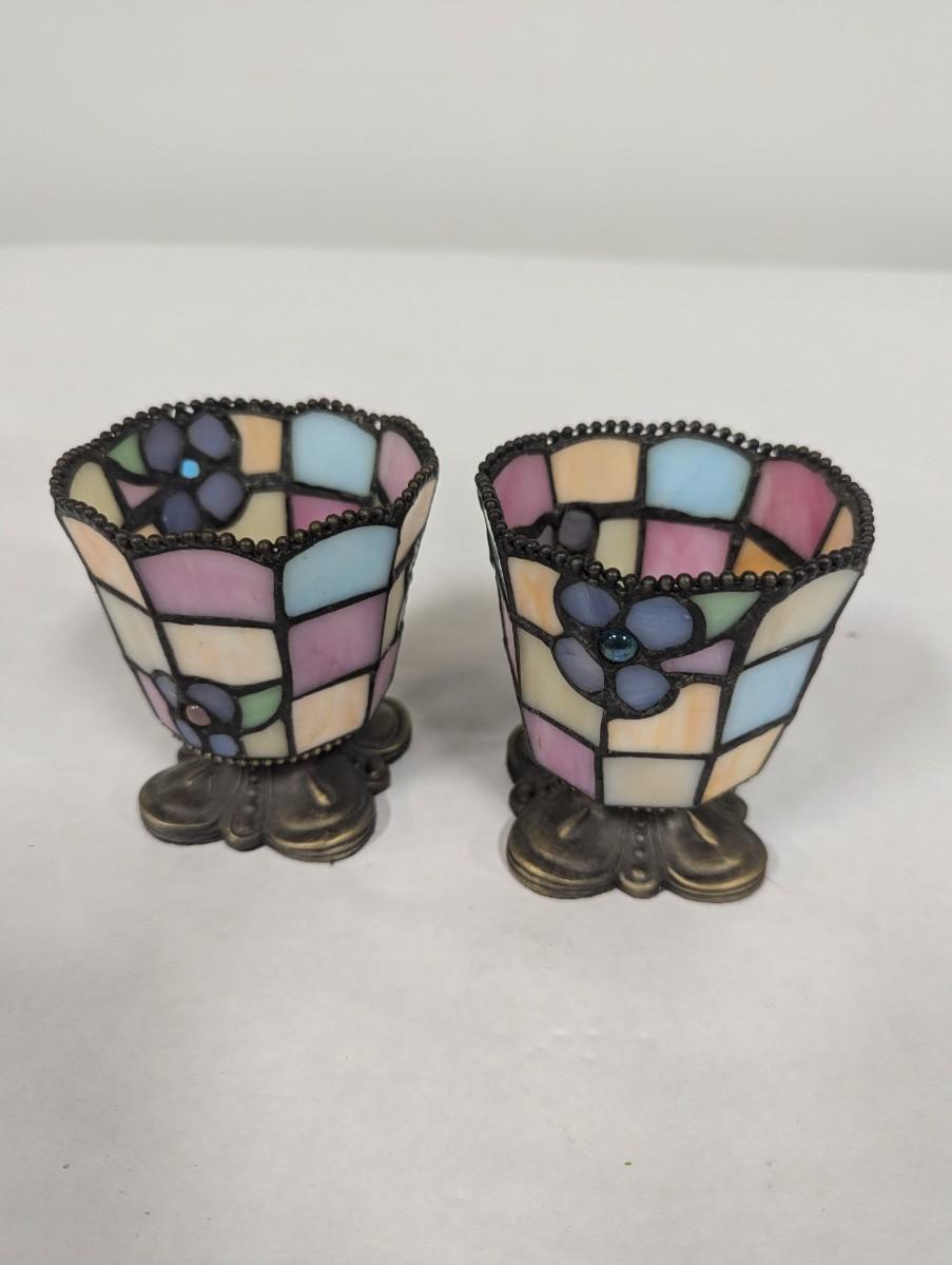 PartyLite Hydrangea Stained Glass Tiffany Style Votive Tea Light Candle Holders
