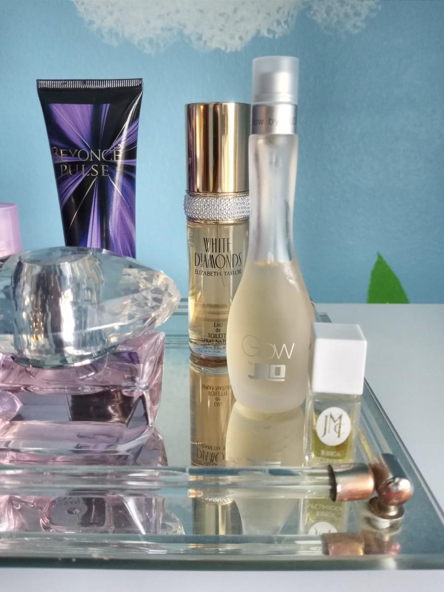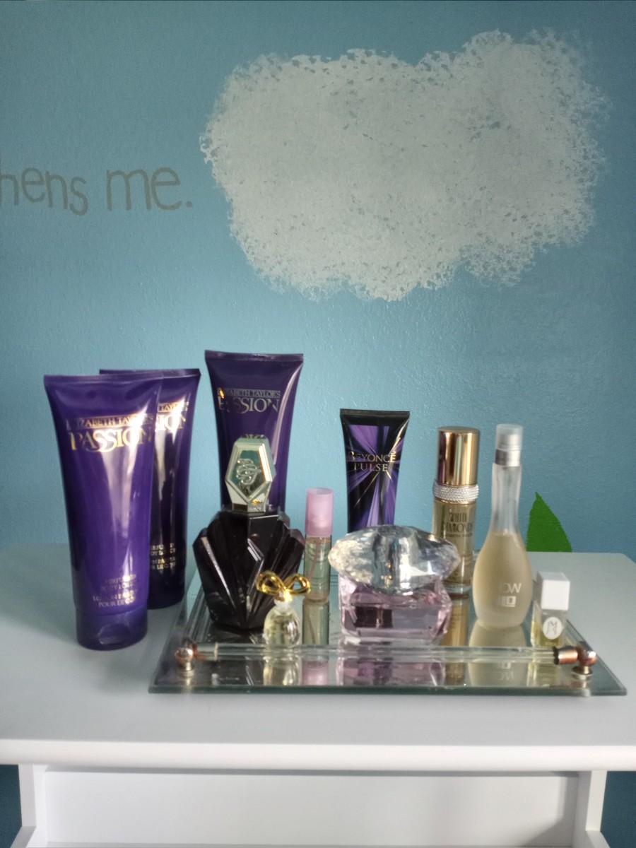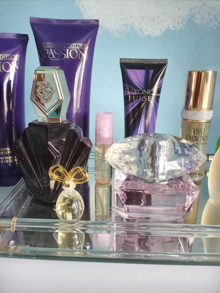 PASSION PERFUME AND LOTION-WHITE DIAMONDS-JLO AND MIRROR TRAY