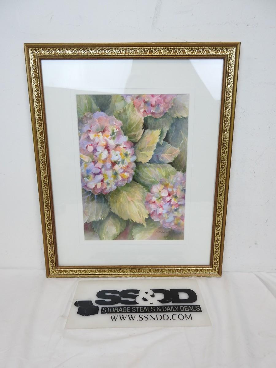Pastel Flower Picture in Gold Frame by Artist B. Muratore 18' W x 22" Long