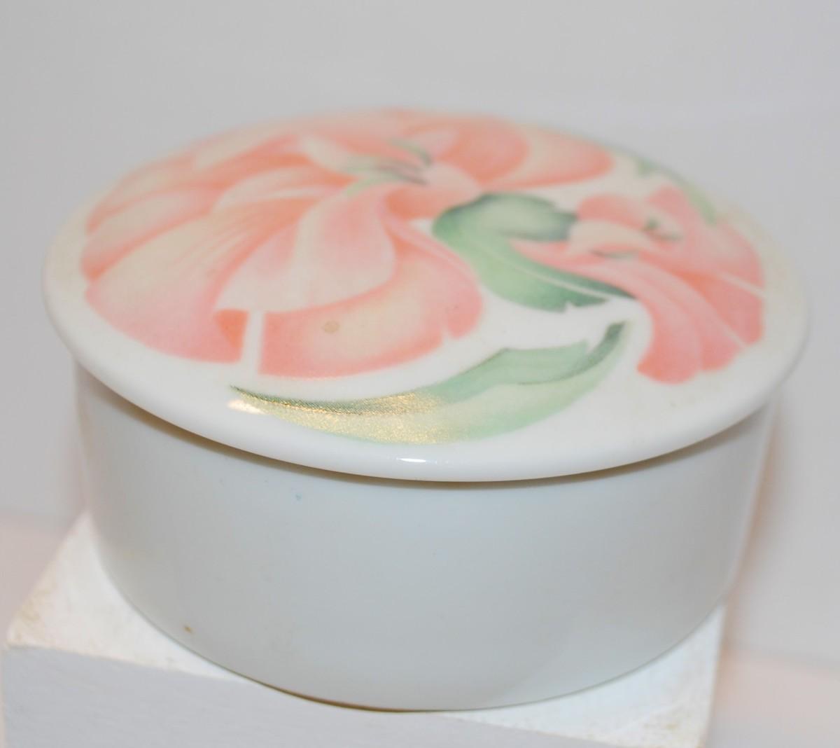Pastel Pink Flowered Porcelain Trinket Box 3" Round MADE IN FRANCE