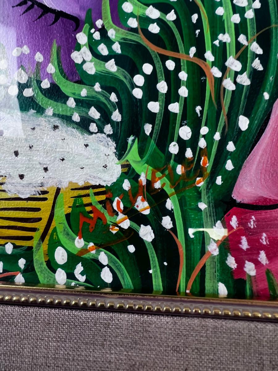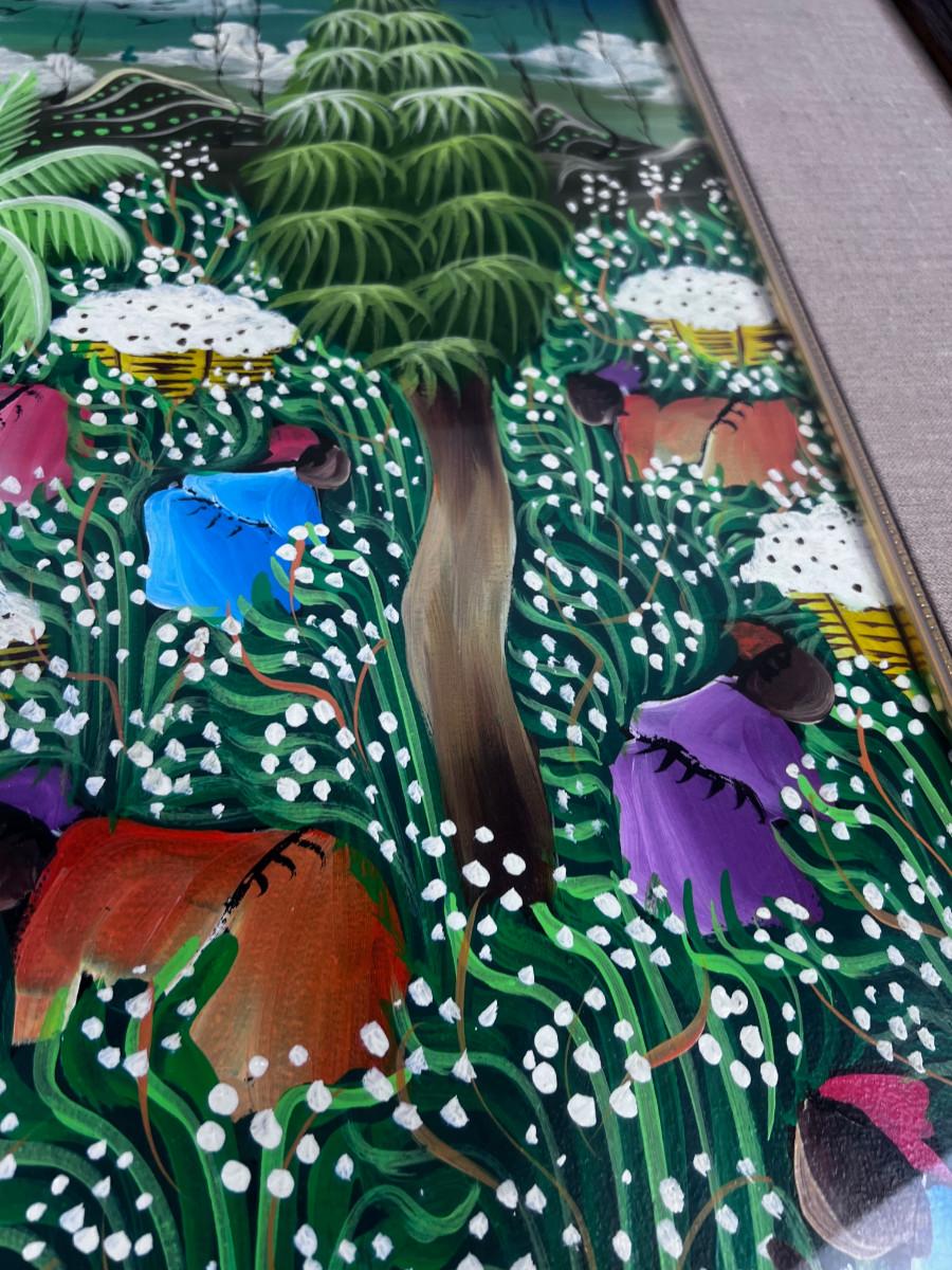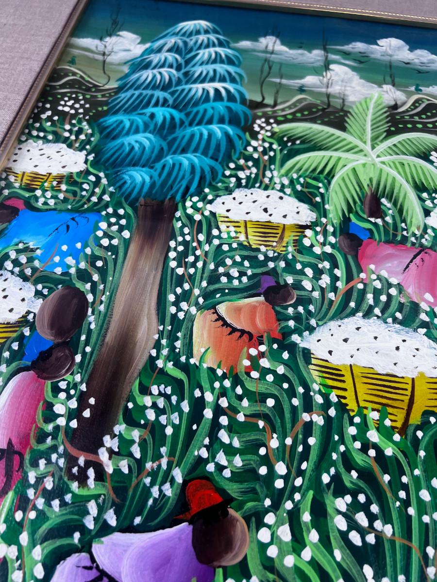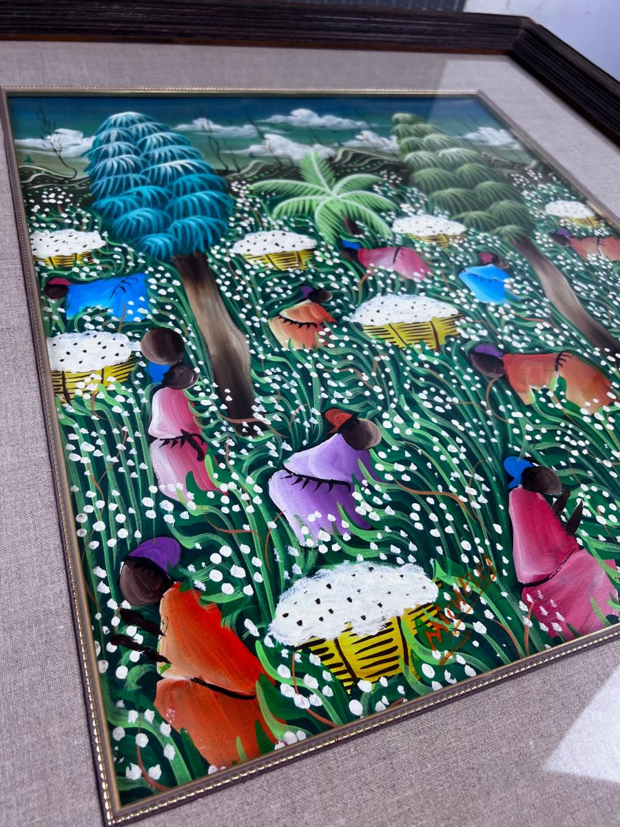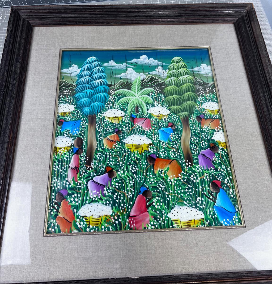 Pastel Under Glass, Women Picking Cotton, Signed Michele FRAMED