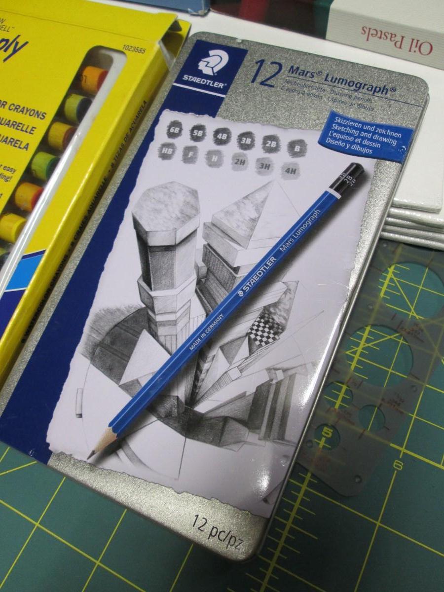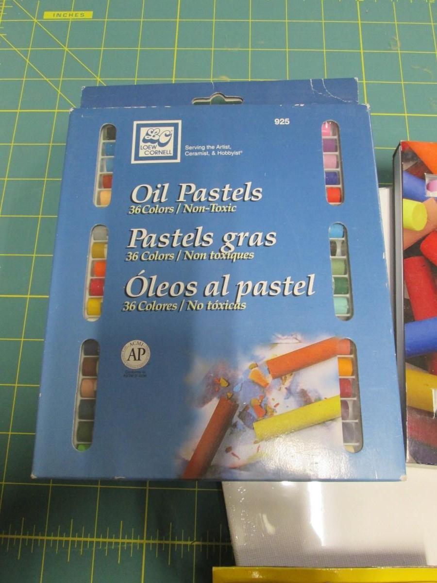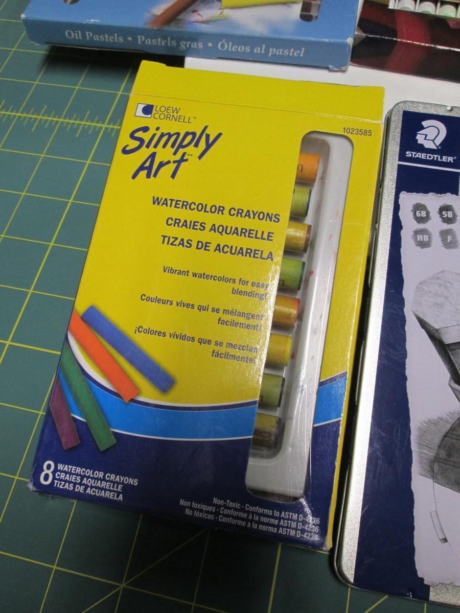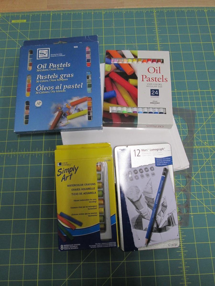 Pastels, Watercolor Crayons, Set of Pencils, and Small Canvases