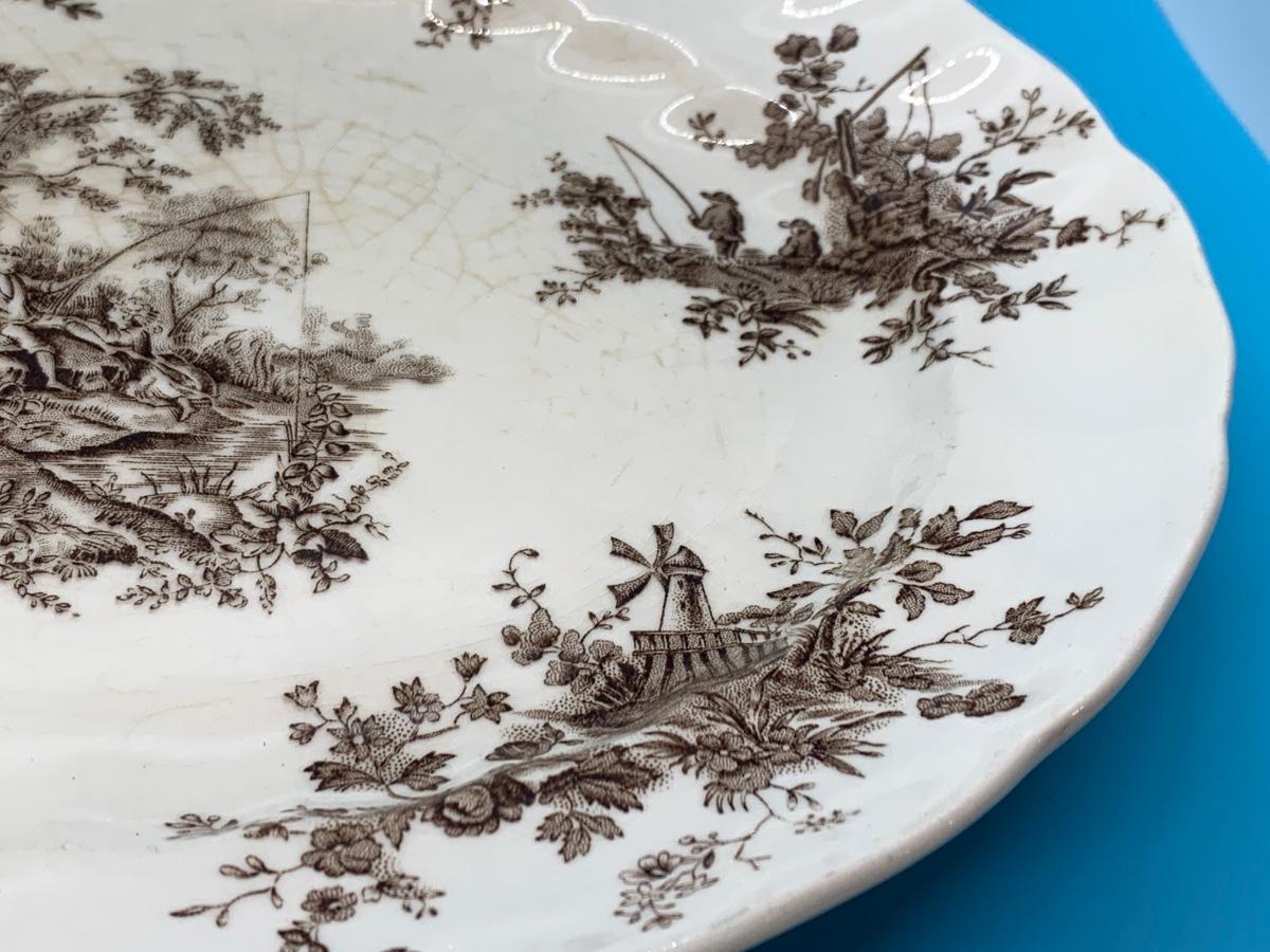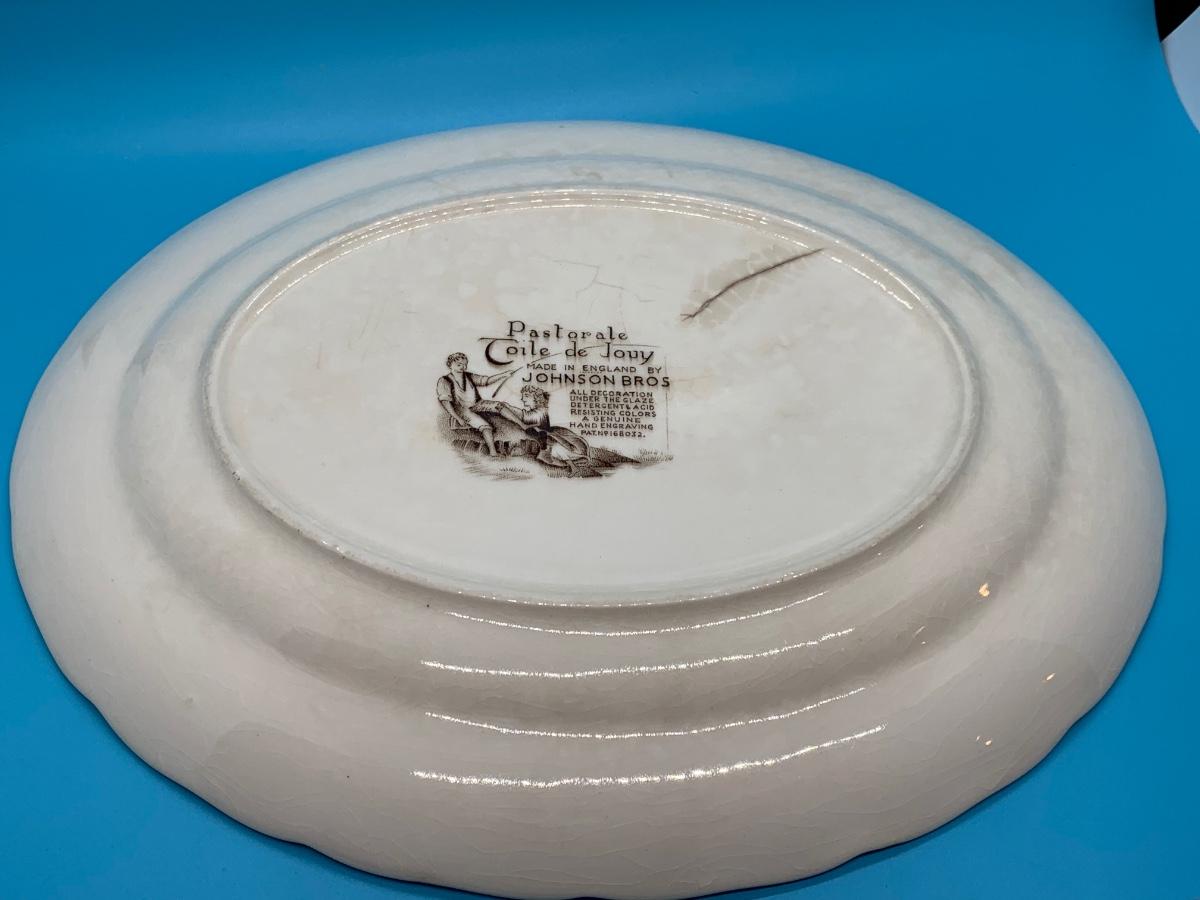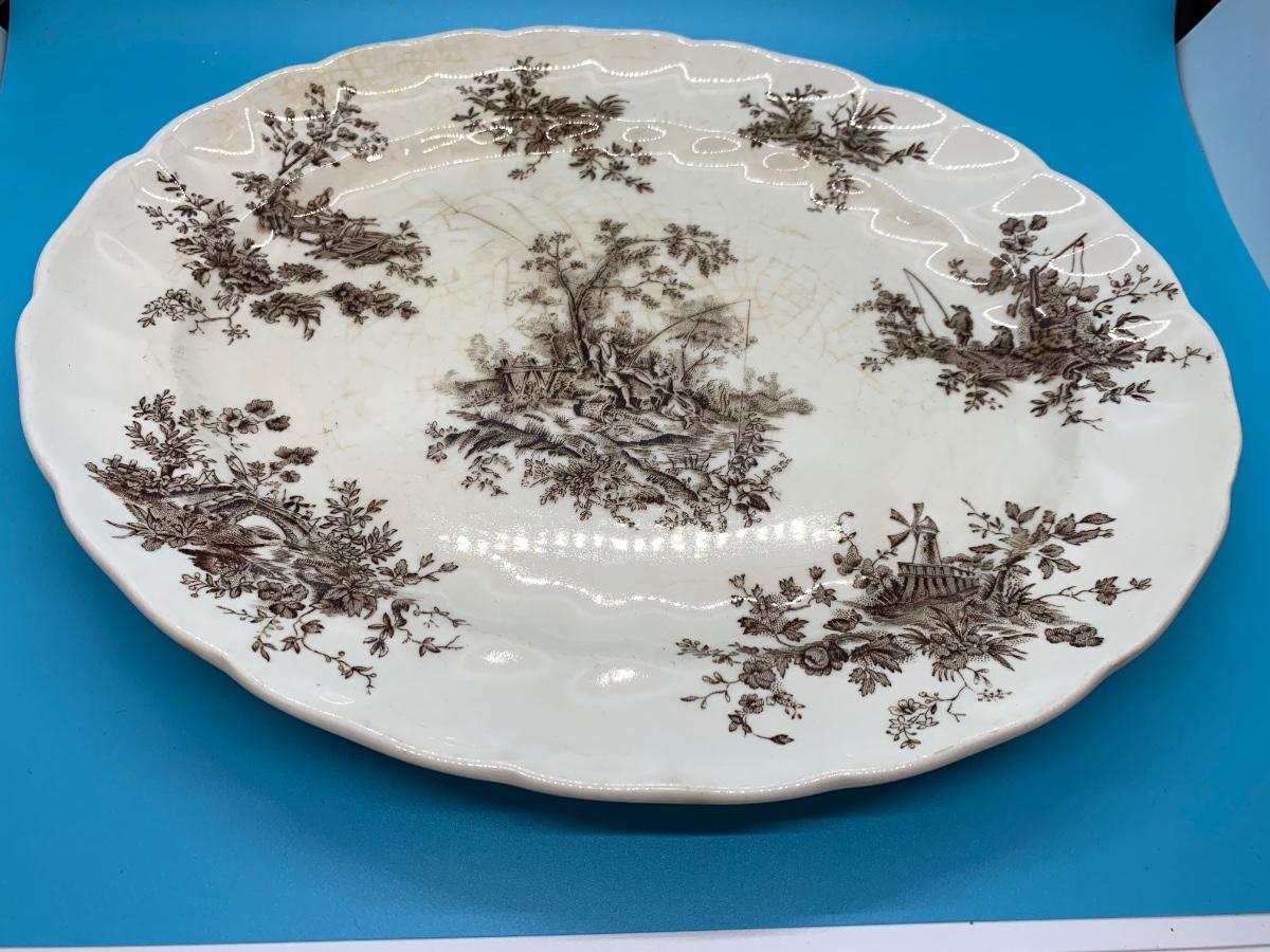 Pastorale Toile de Jouy oval serving platter tells a story with fishing scenes