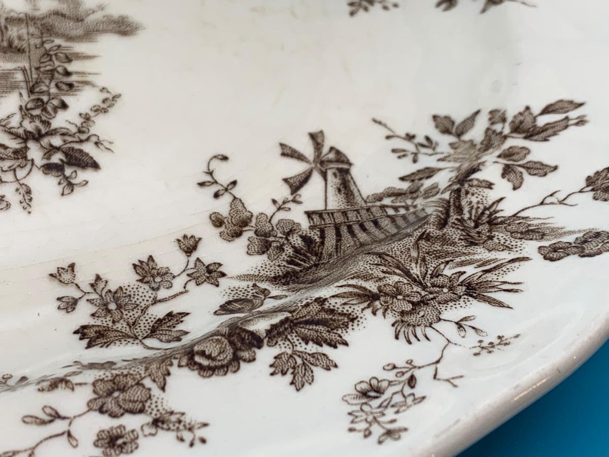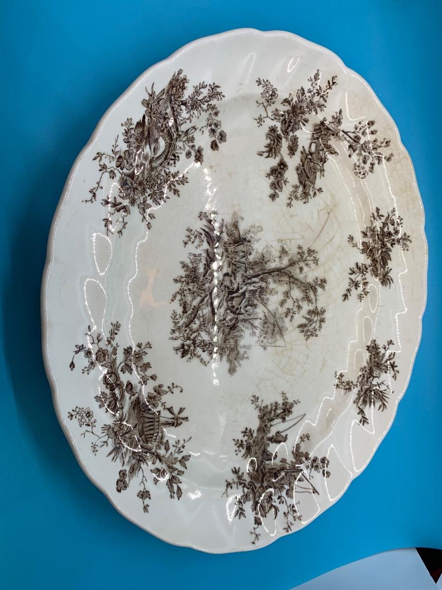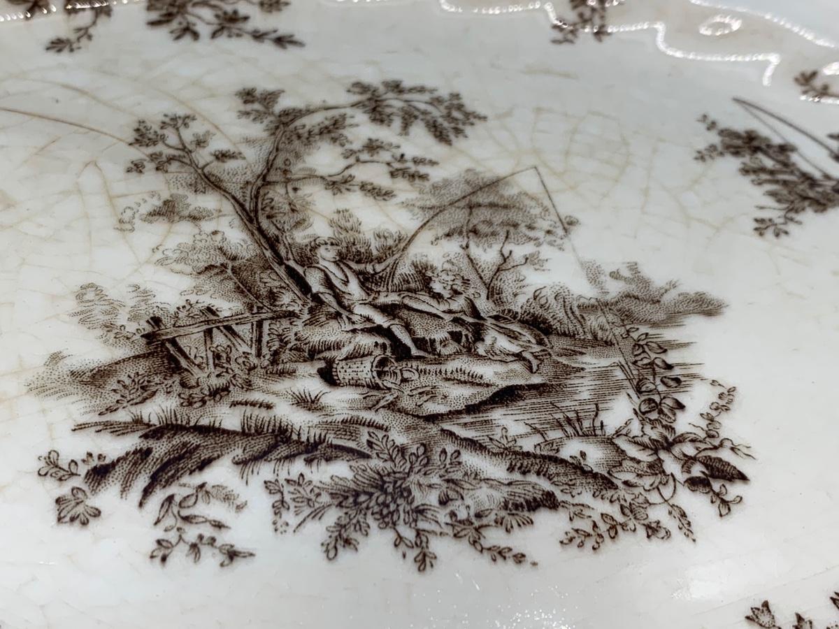 Pastorale Toile de Jouy oval serving platter tells a story with fishing scenes