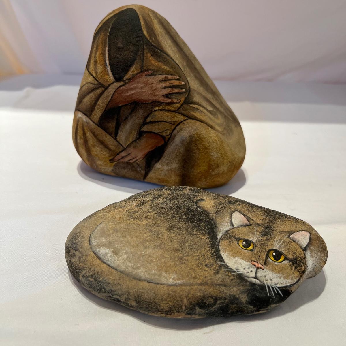 Pat Gaines & S.A Lynch Signed & Painted Stones (D-RG)