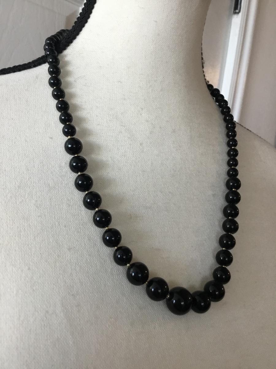 Pat pending black beaded statement necklace vintage