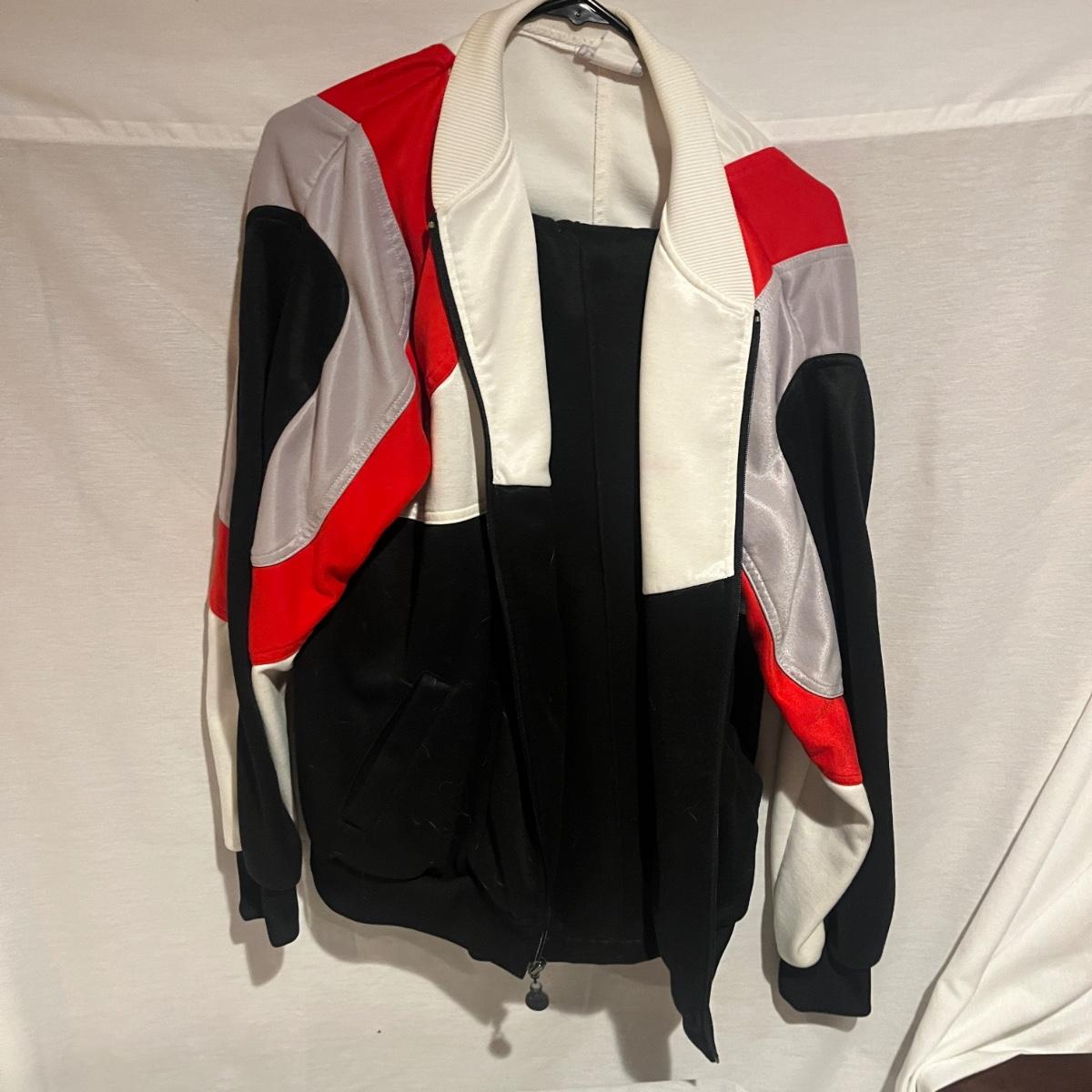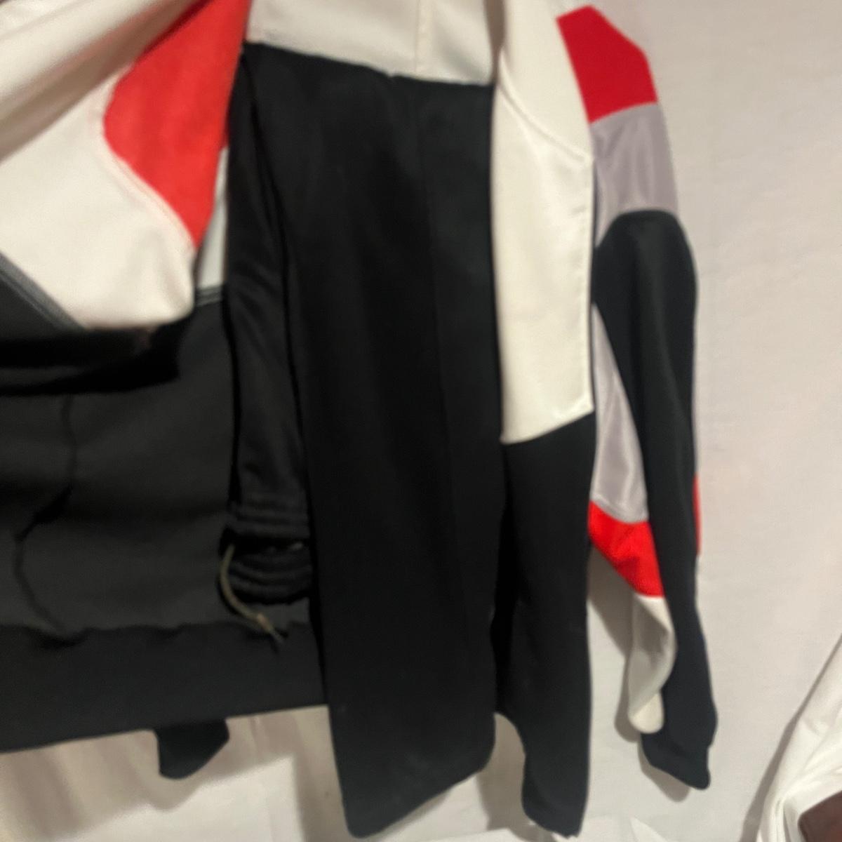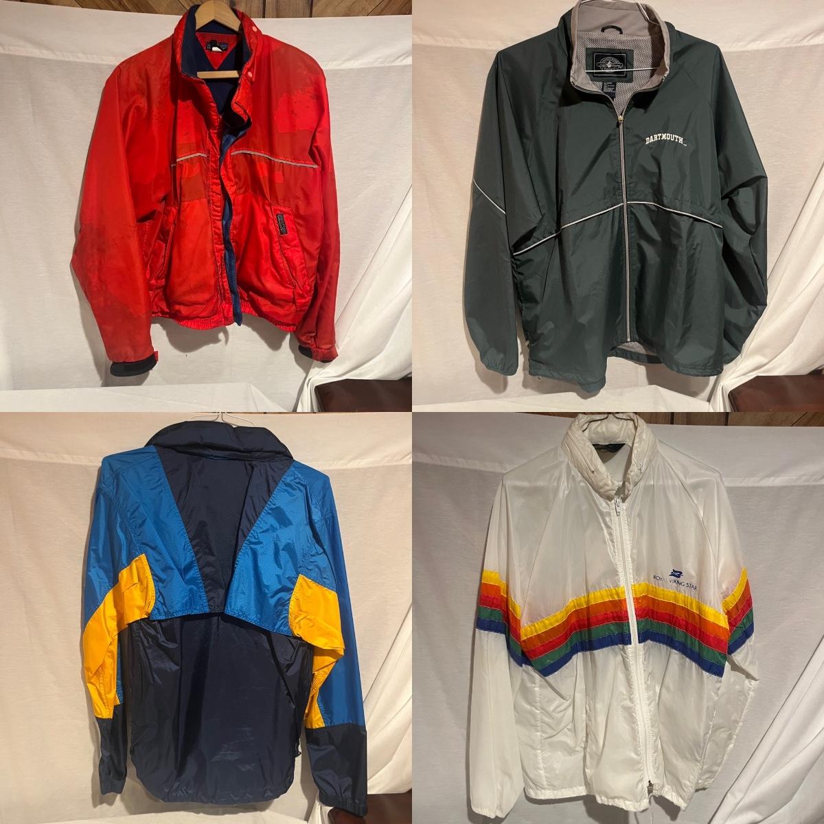 Lot includes Patagonia jacket, Nike jacket with pants, Adidas jacket with pants, Charles River jacket, North Face jacket, Nautical jacket and a Sherry jacket. Jackets are medium and large. Patagonia jacket has discoloration, see pictures.