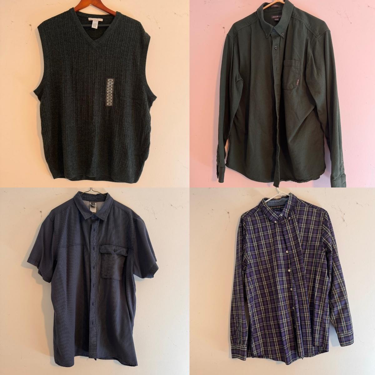 This lot includes 24 men’s short and long sleeve button ups in sizes large to extra large. You’ll find shirts from Patagonia, Tommy Hilfiger, Chaps, Columbia and other brands. Not all are shown in photos. Shipping available.