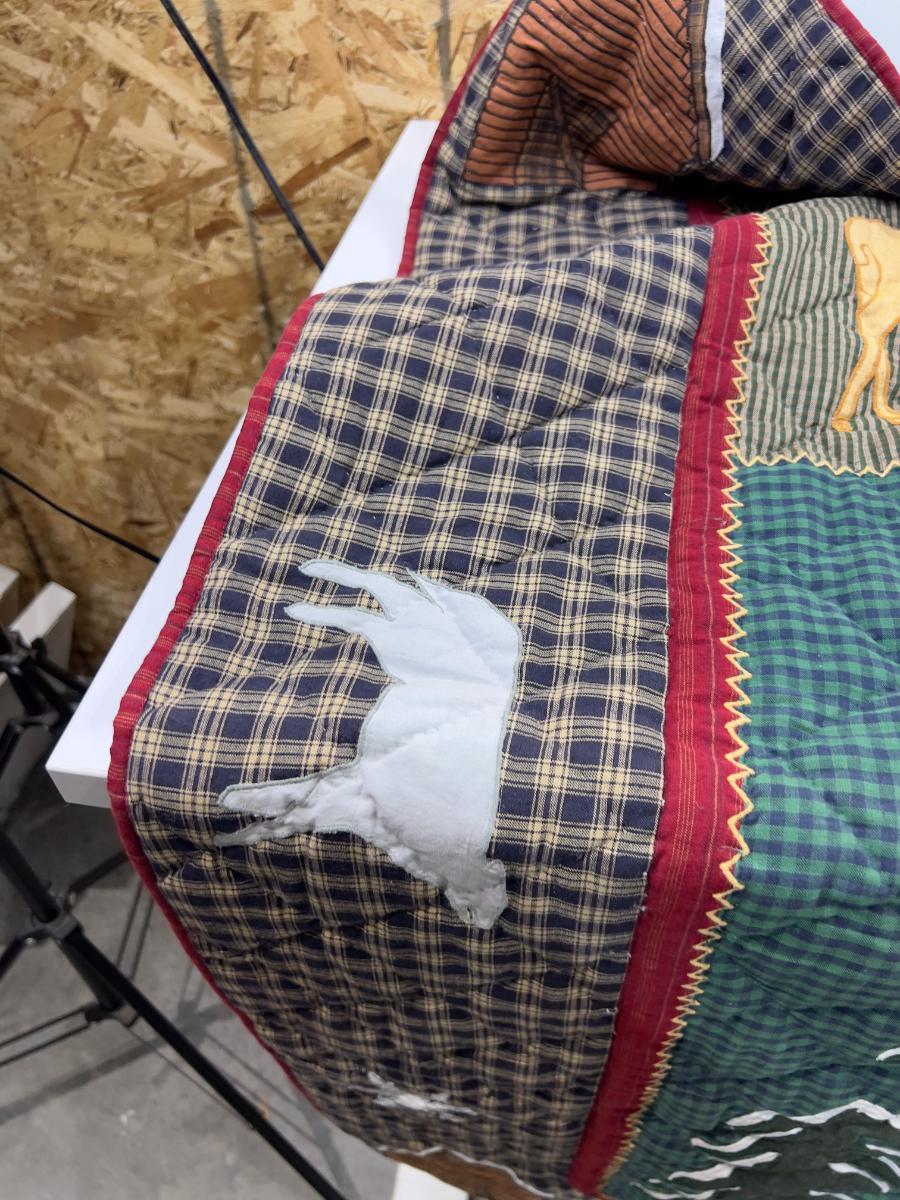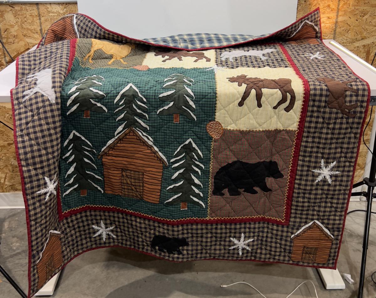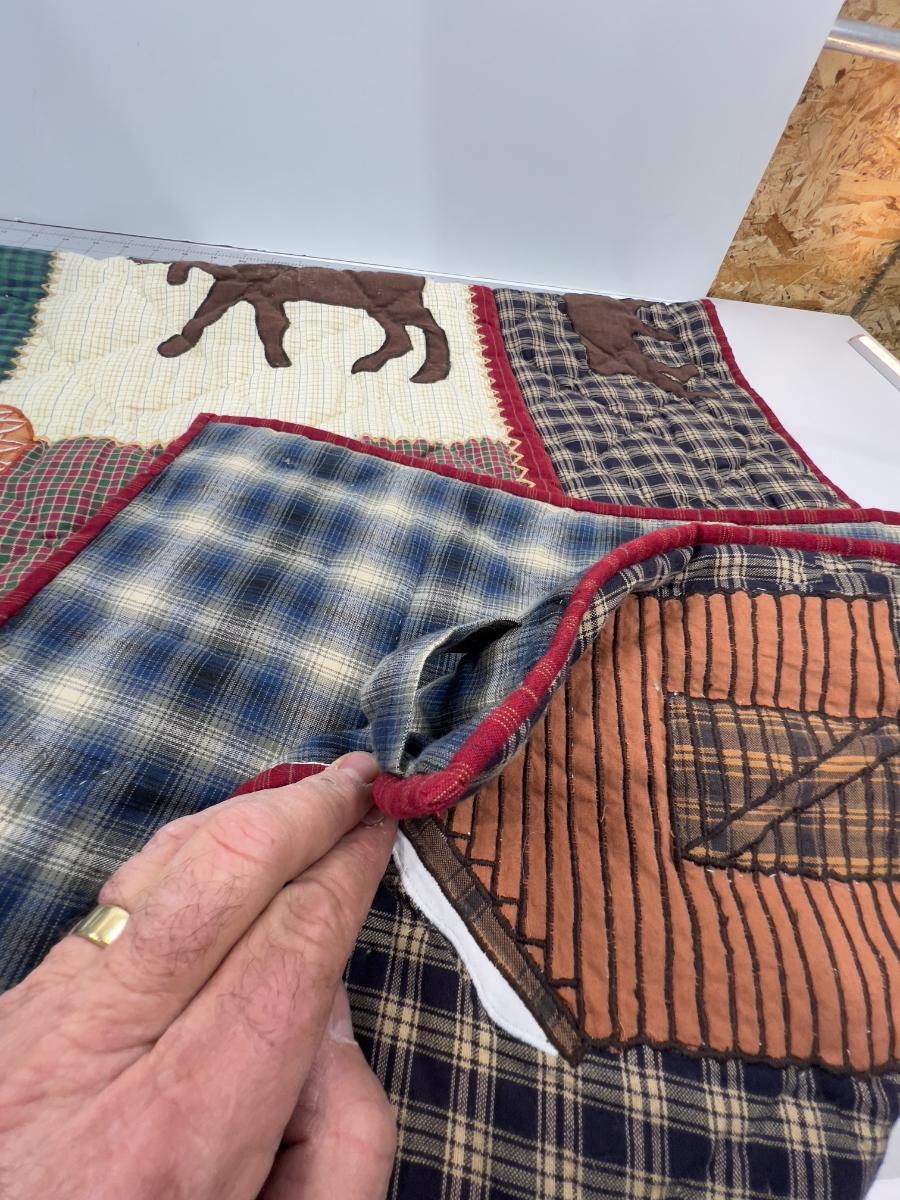 Great Condition, Like NEW - 51 X 62 Has Loop to hand on a wall. It really is a darling Quilt!