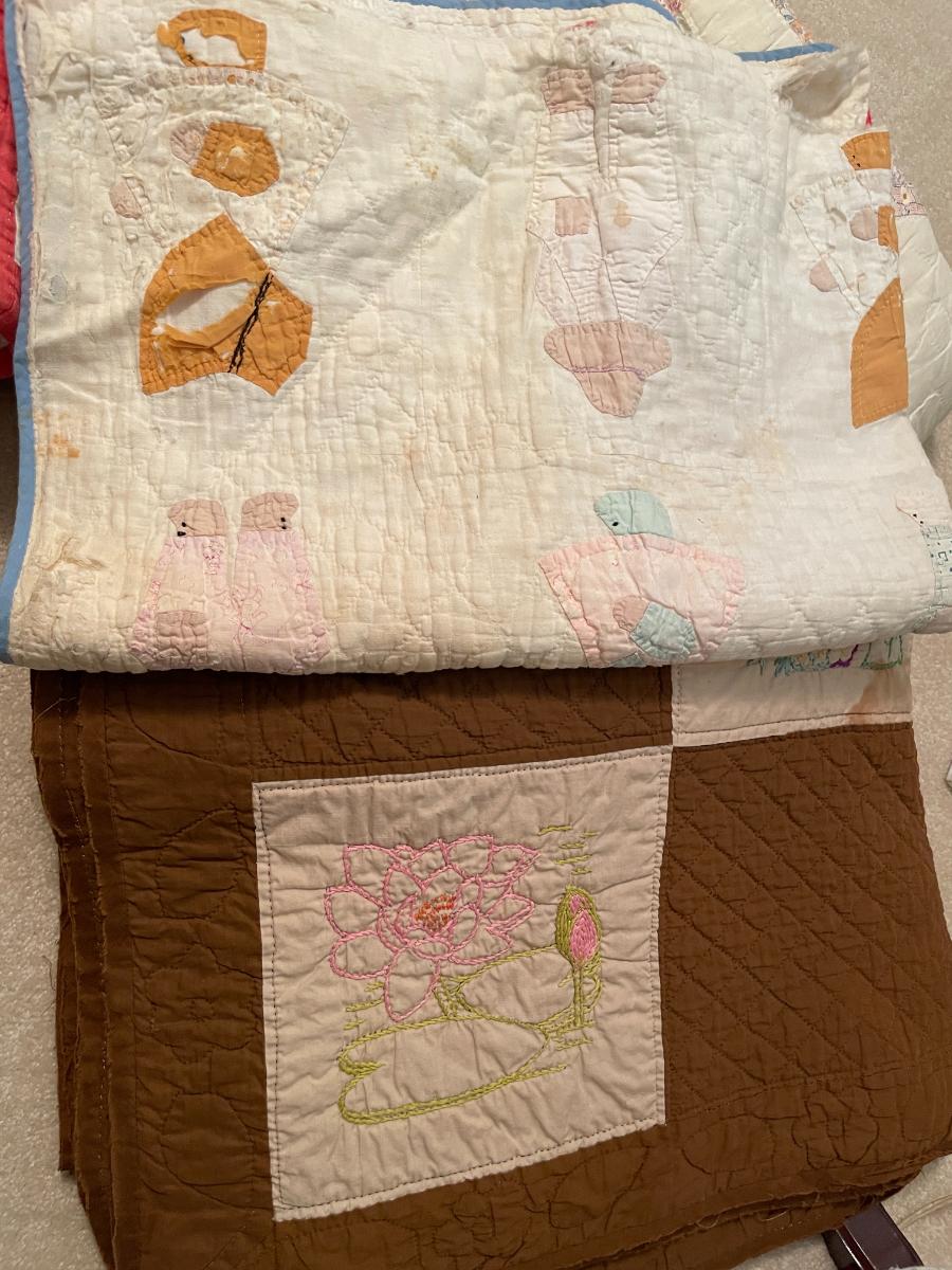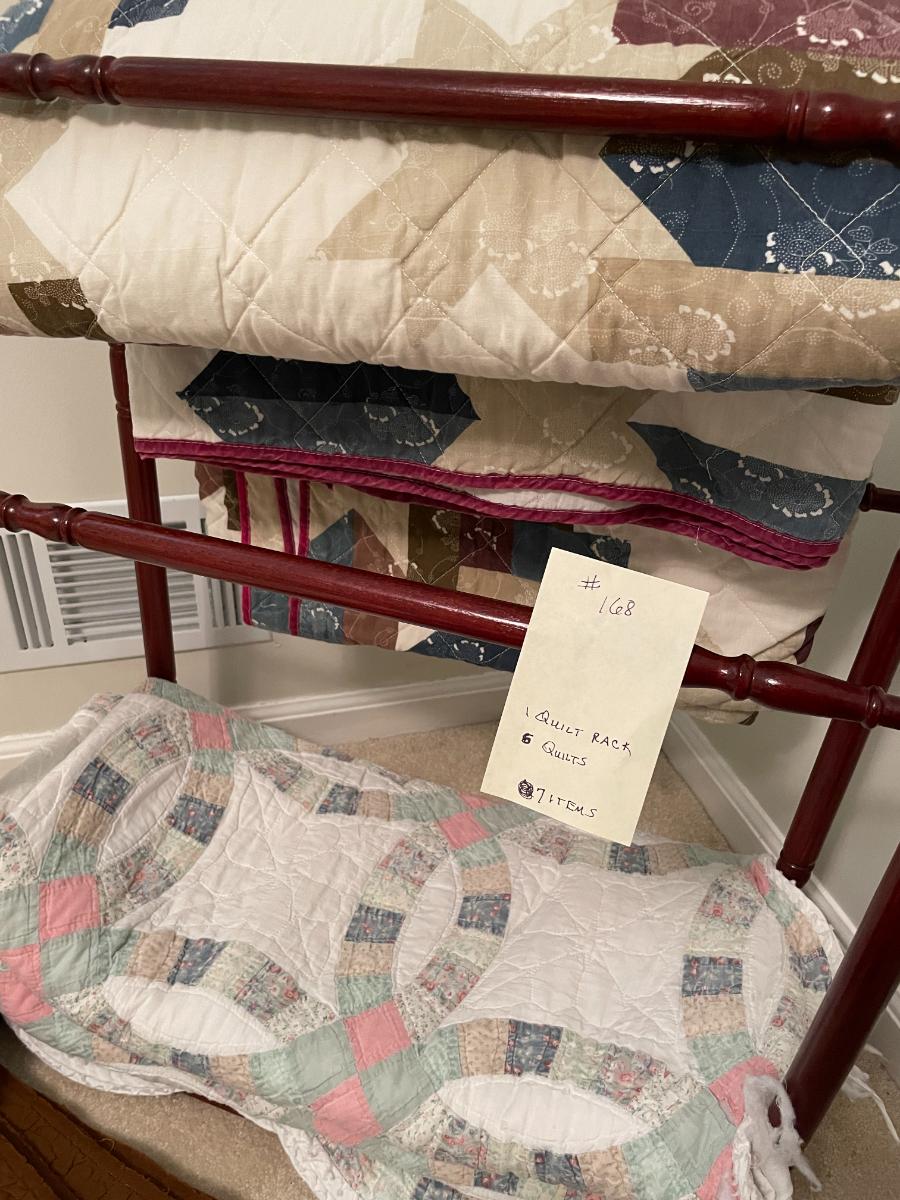 1 Quilt stand, 6 quilts (asst. sizes)
