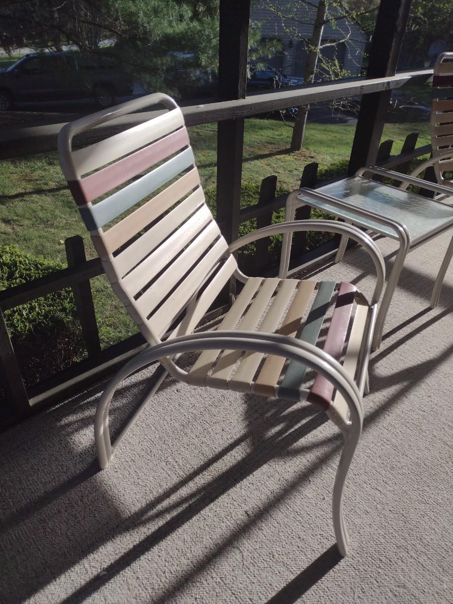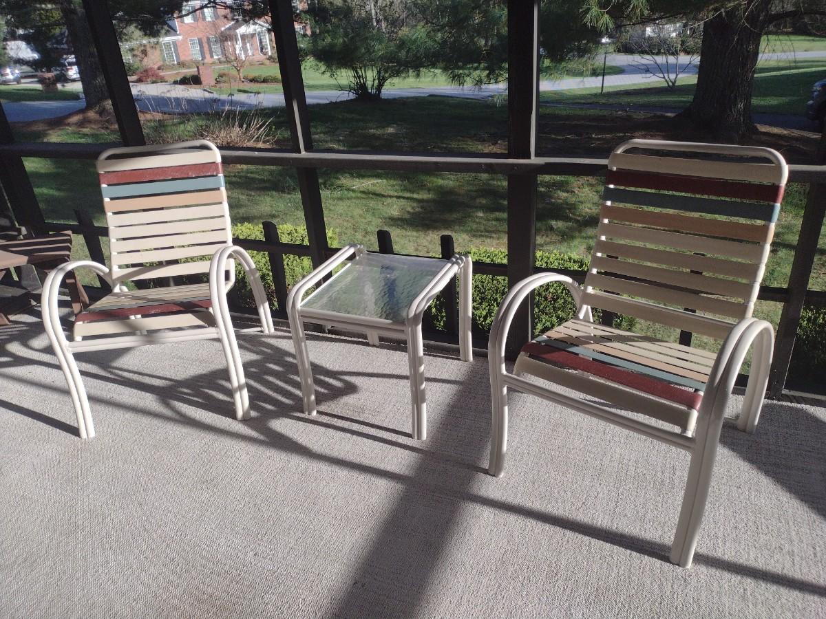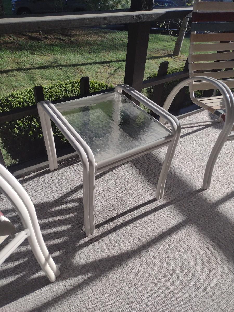 Three Piece Patio Set includes Two Swivel Chairs and Square Table