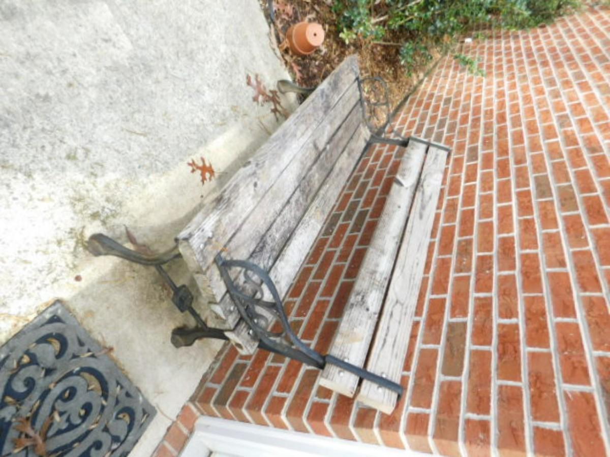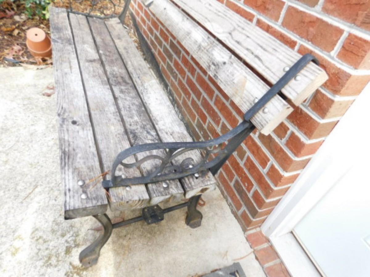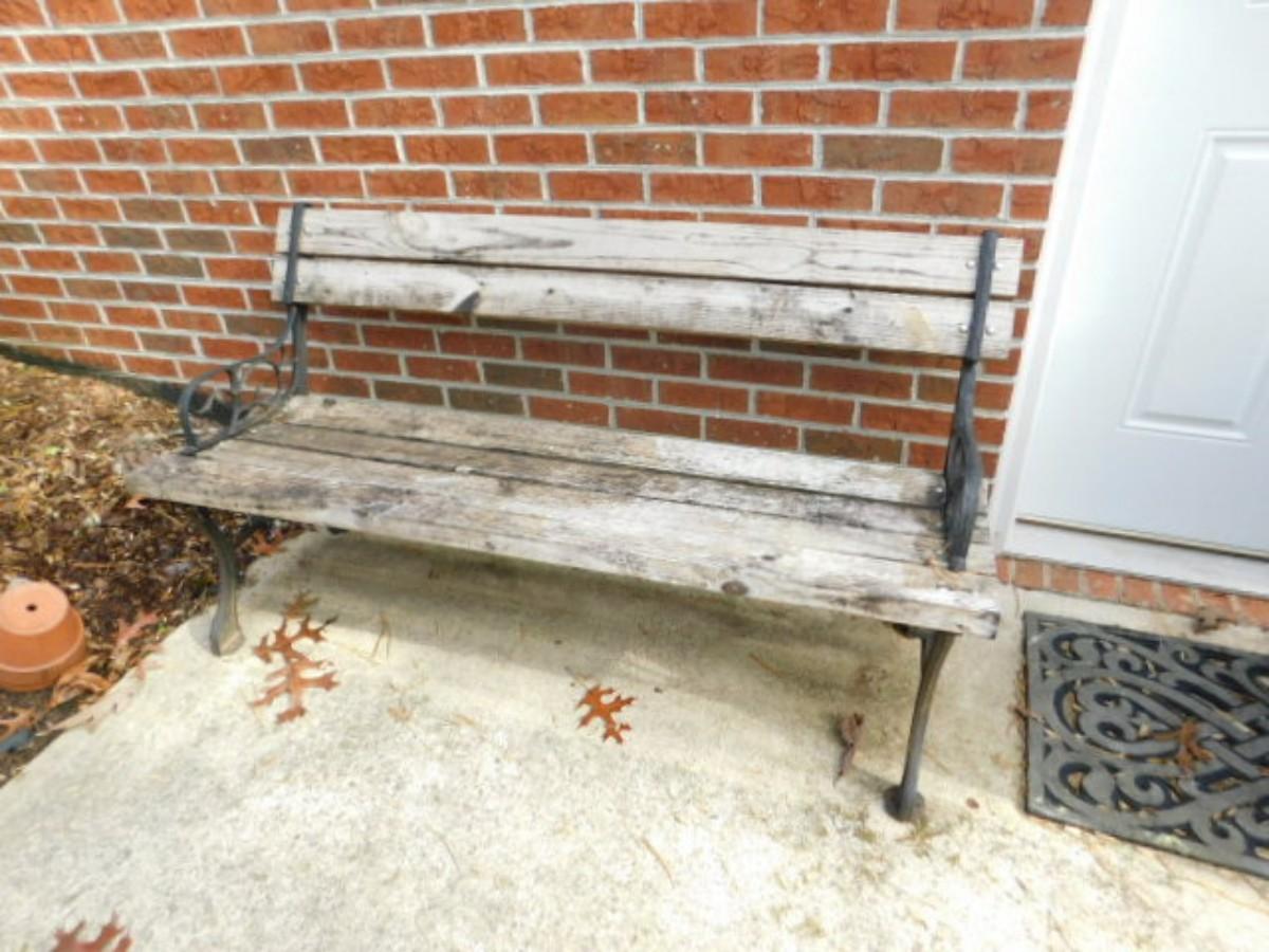 Patio Bench with Wood Slat Seat and Cast Base