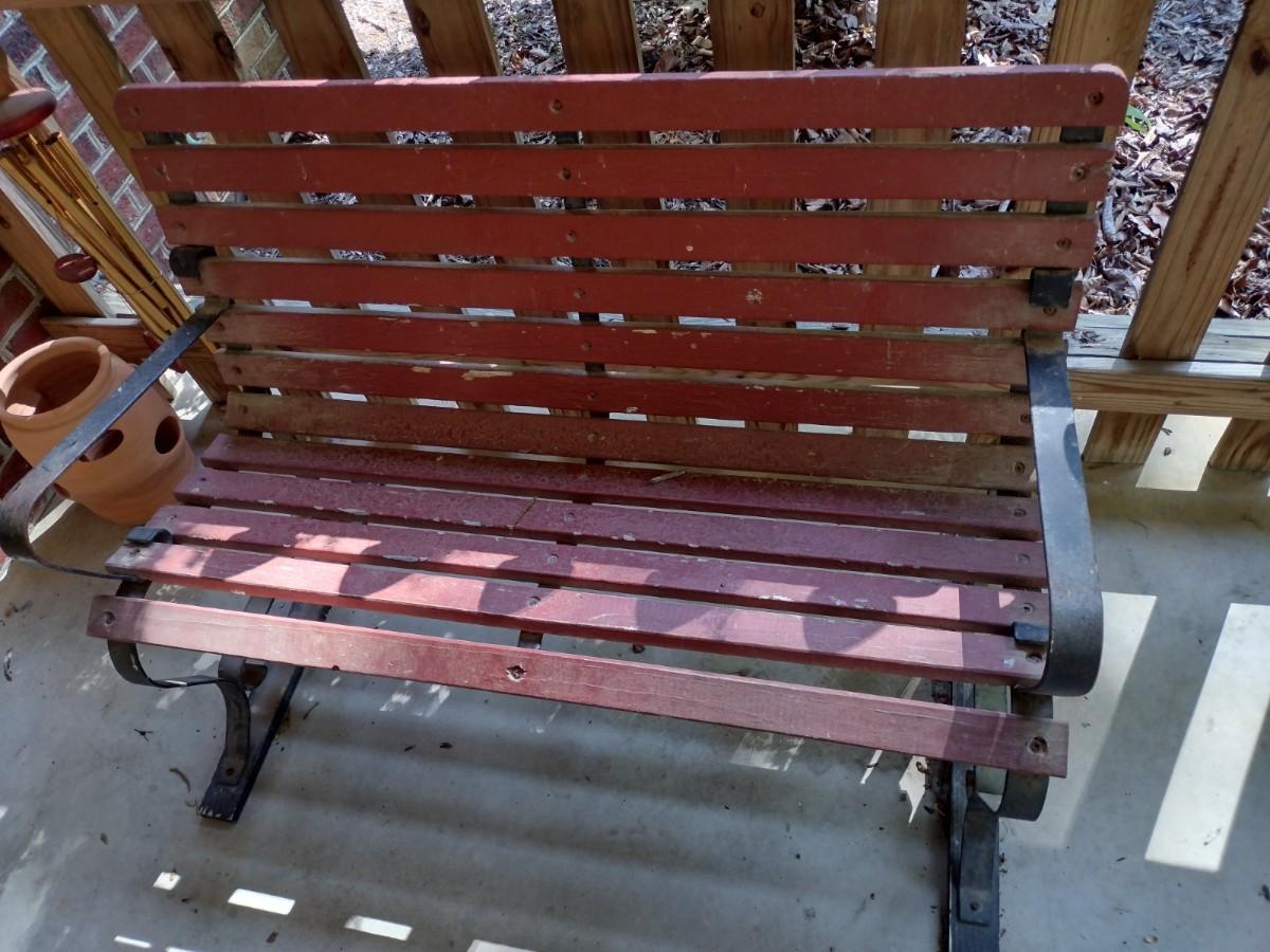 Patio or Garden Bench with Wood Slats and Cast Frame