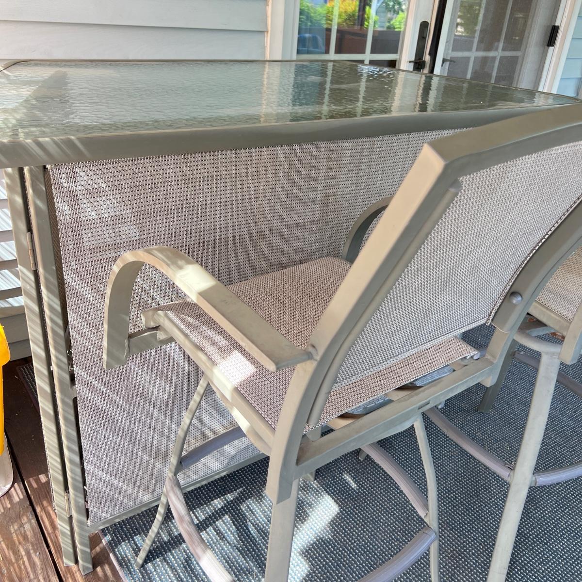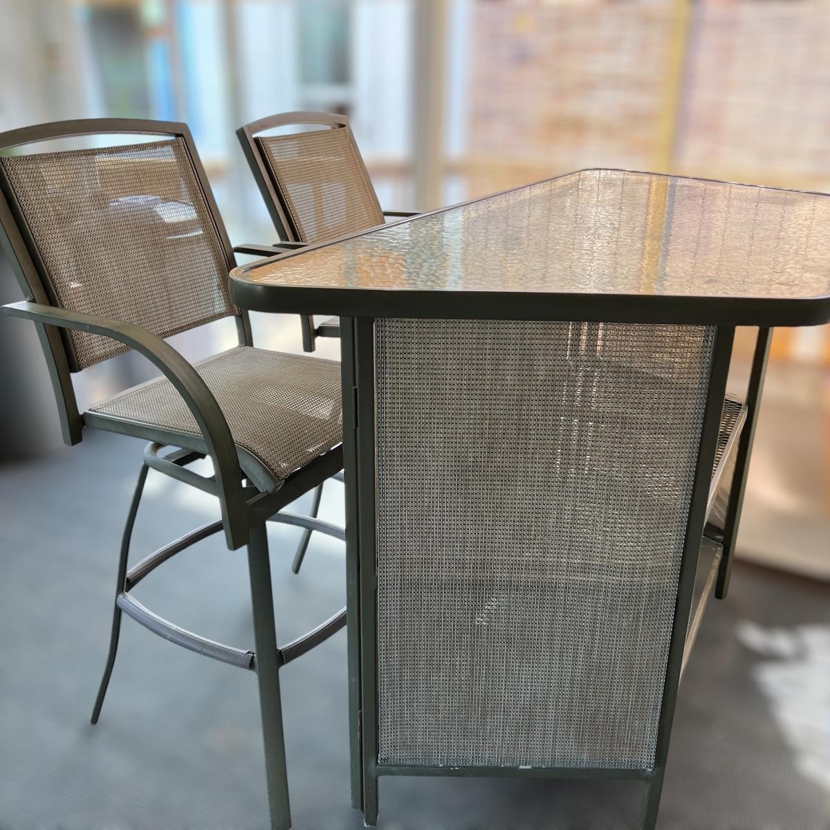 Folding Patio Outdoor Bar w 2 Stools Set