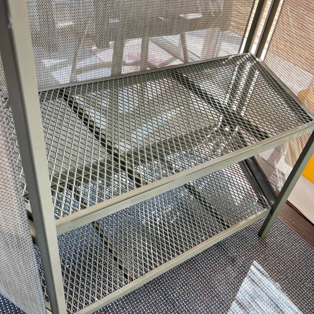 Metal frame. Bar sides and shelves fold down for compact storage. Buying "as is - as found" in this wonderful estate. See ALL PHOTOS for content, condition, & dimensions. NEVER a Buyer's Premium or Credit Card Fee added.