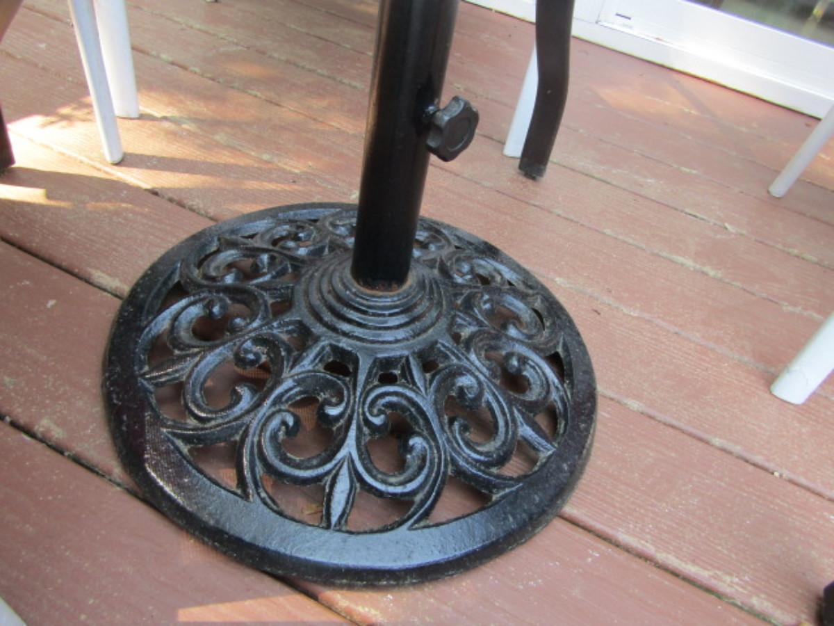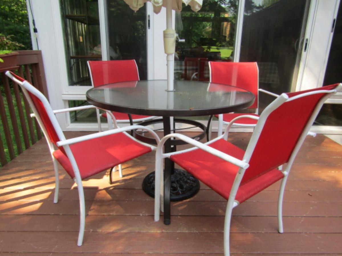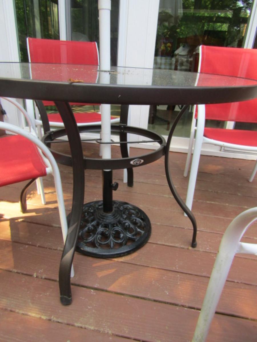 Patio Set with Umbrella. 4 chairs, 42" table, and umbrella with metal stand.