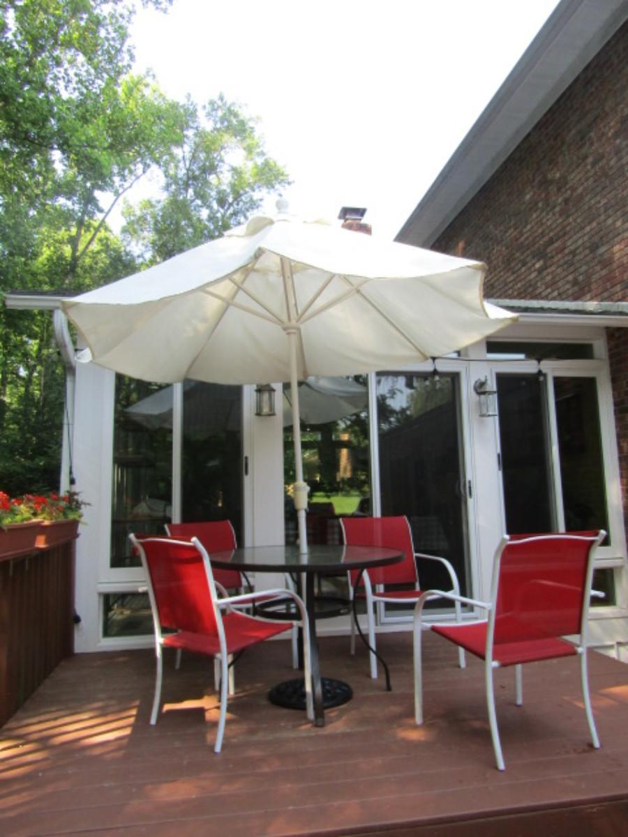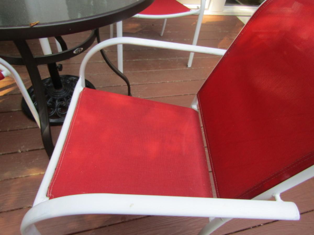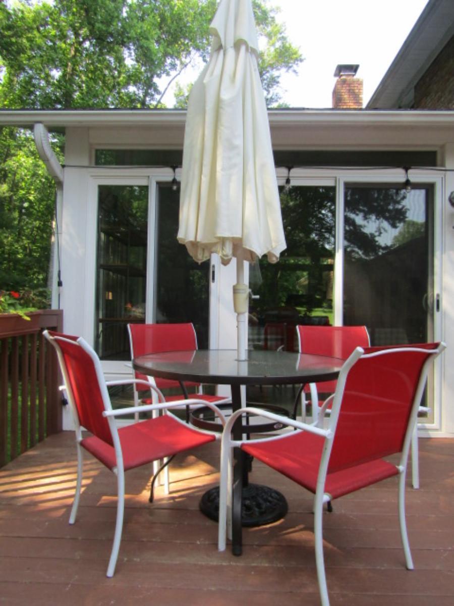 Patio Set with Umbrella. 4 chairs, 42" table, and umbrella with metal stand.