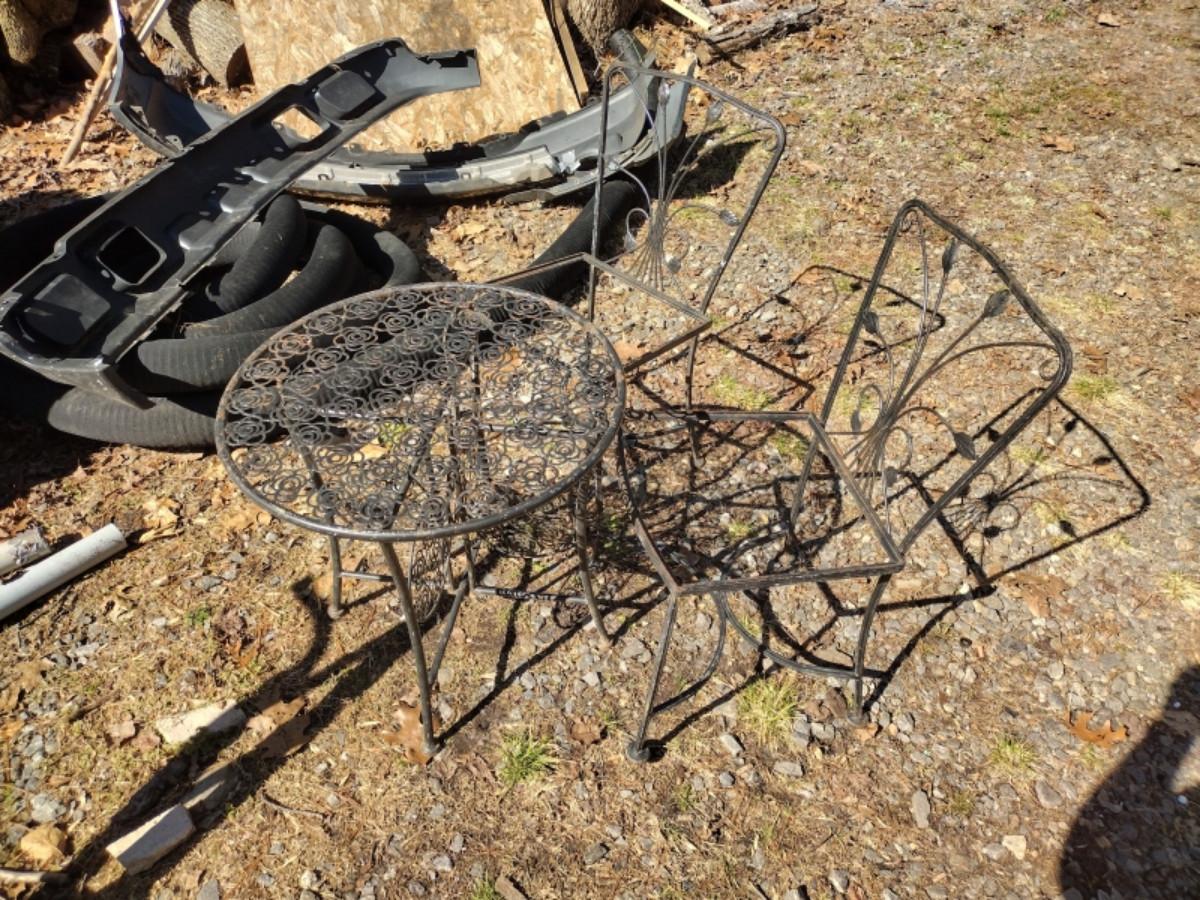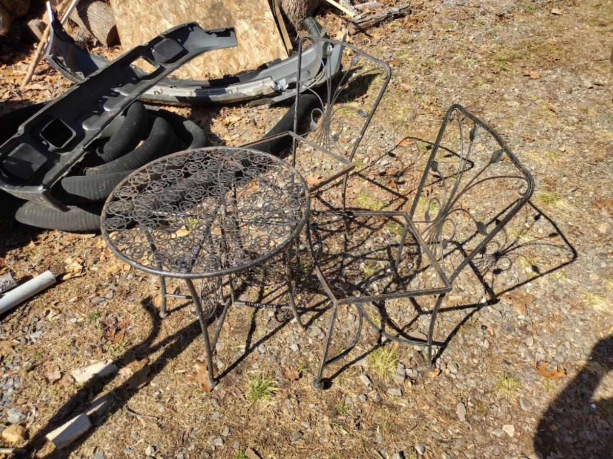 Table feels like rolled steel. Chairs feel like cast iron. Sold as-is.