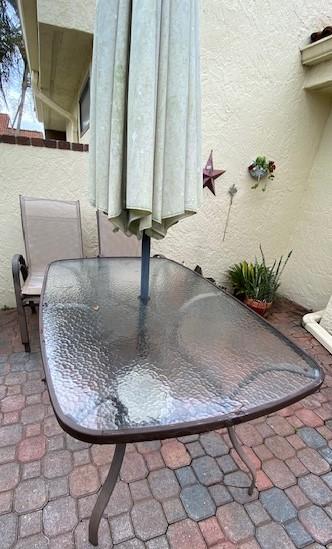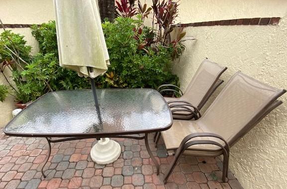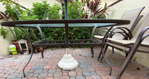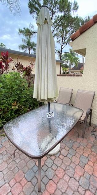 LOT#128: Patio Table with Umbrella & Four Chairs