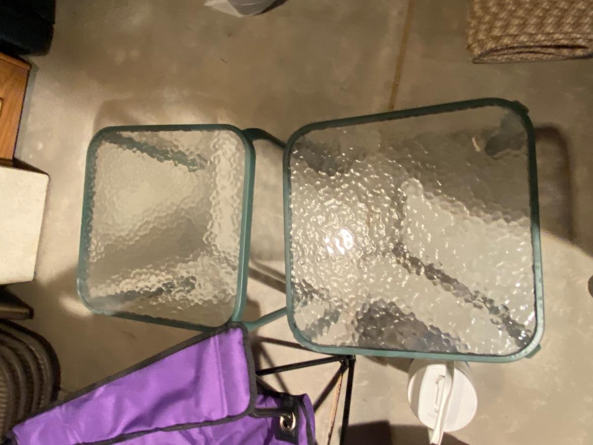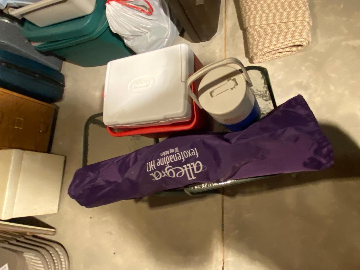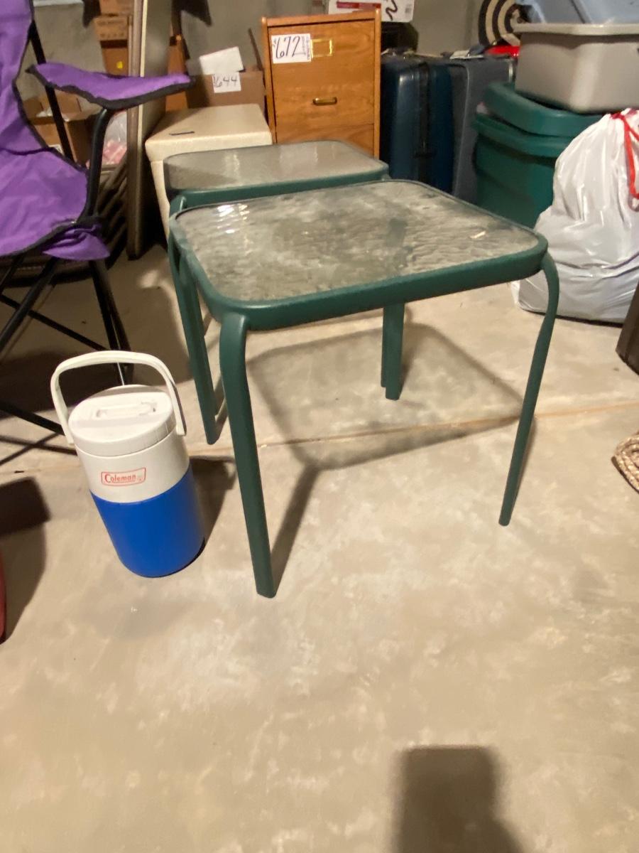 PATIO TABLES, COOLERS, FOLDING CHAIR