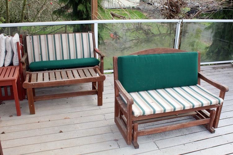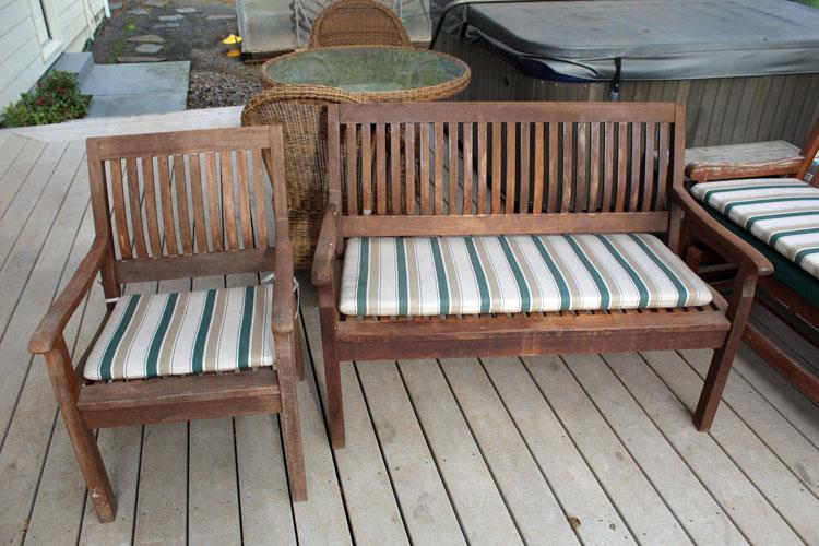 Patio teak bench, rocking bench and 2 chairs set