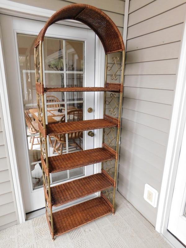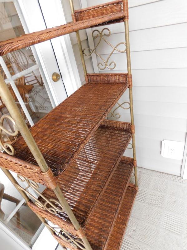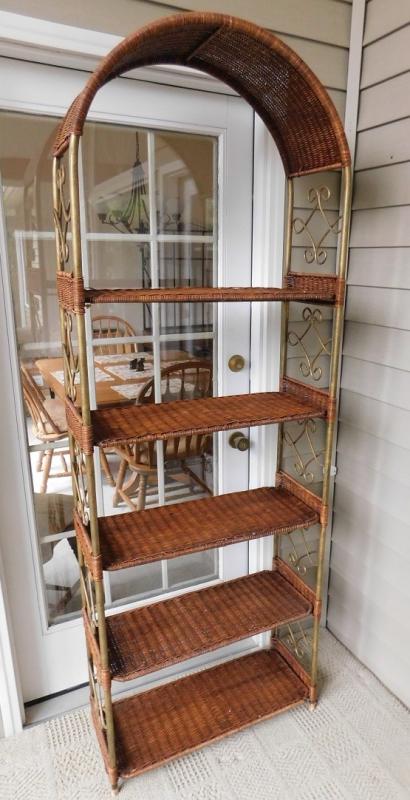 Patio Wicker and Metal Frame Five Shelf Stand  28"w x 80"h