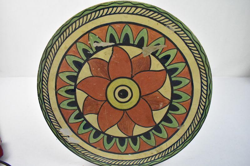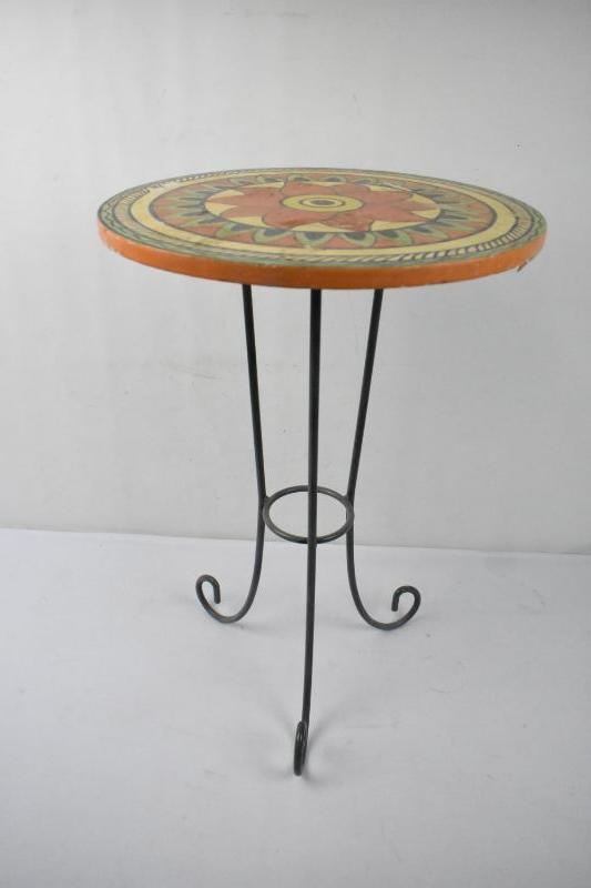 Patio/End Table: Metal Legs, Painted Orange/Blue/Yellow/Green Floral