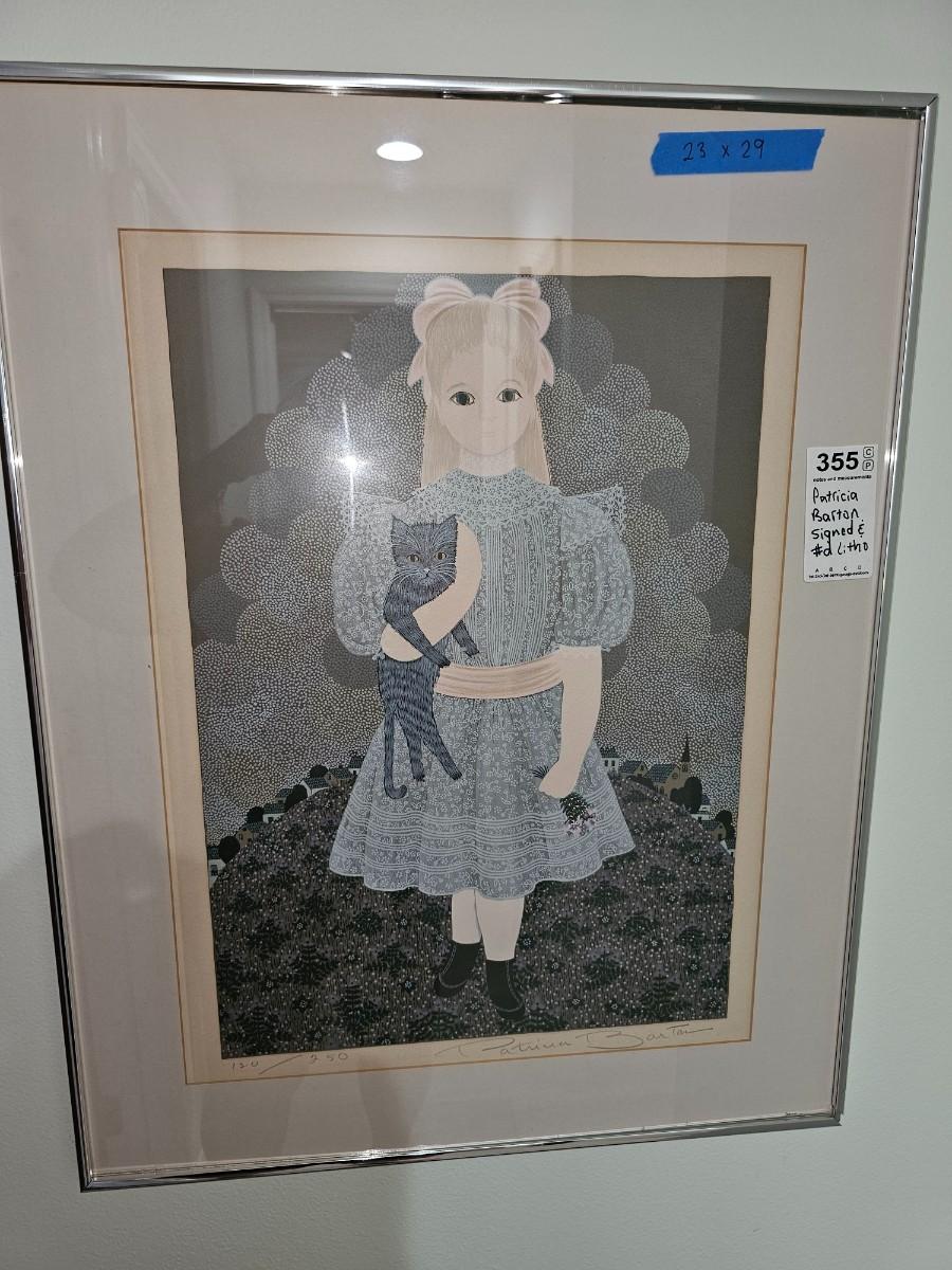 Measures 23x29, signed artwork120/250 framed little girl with cat