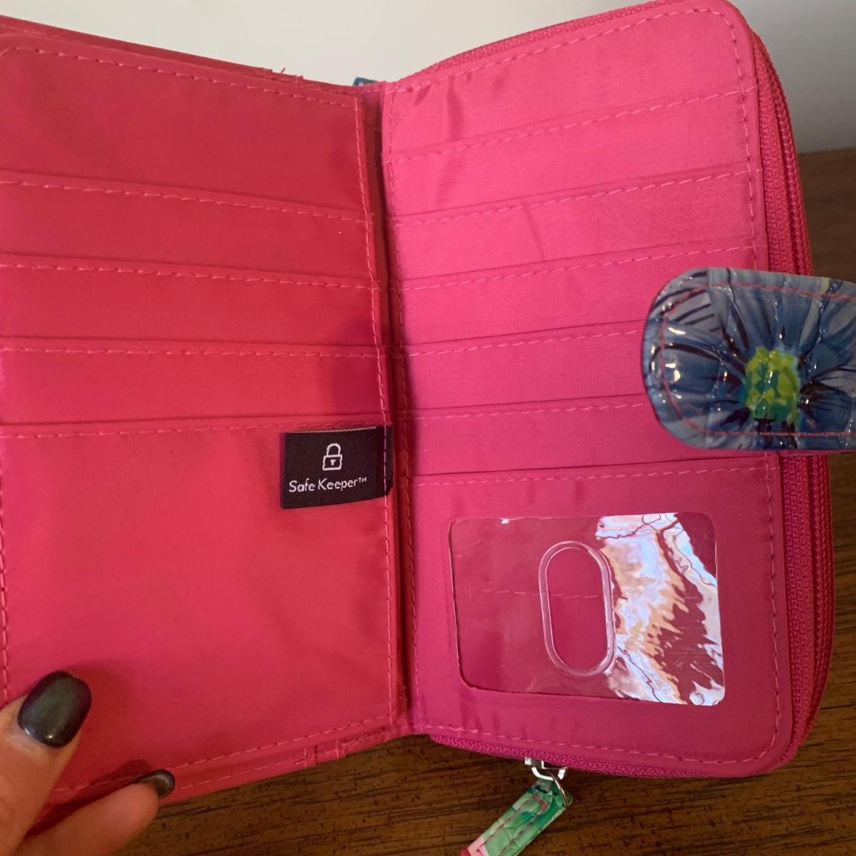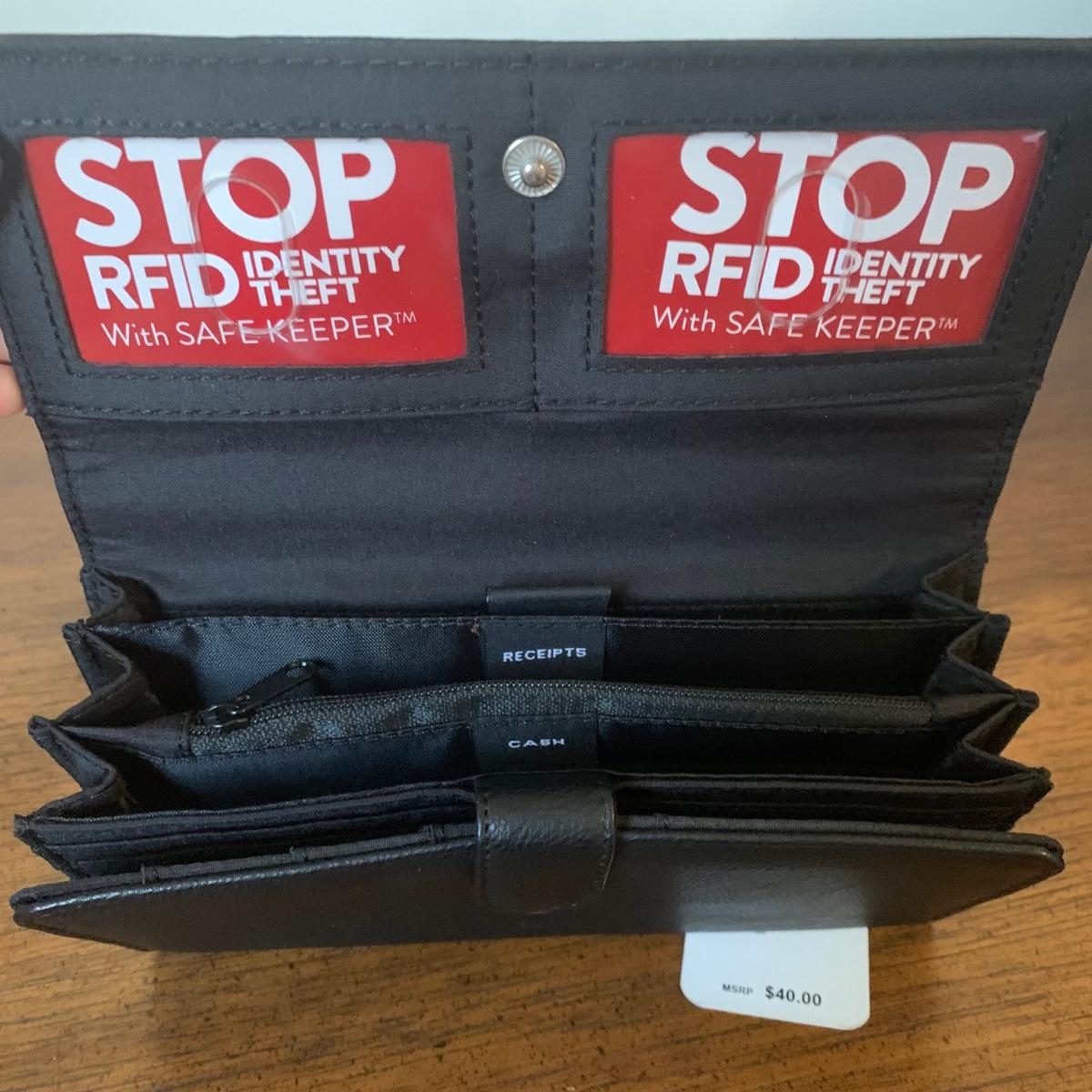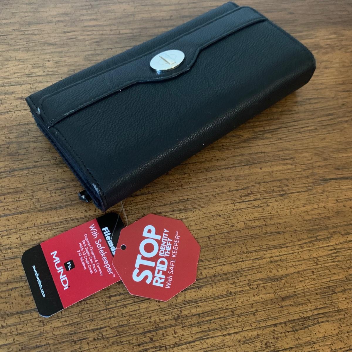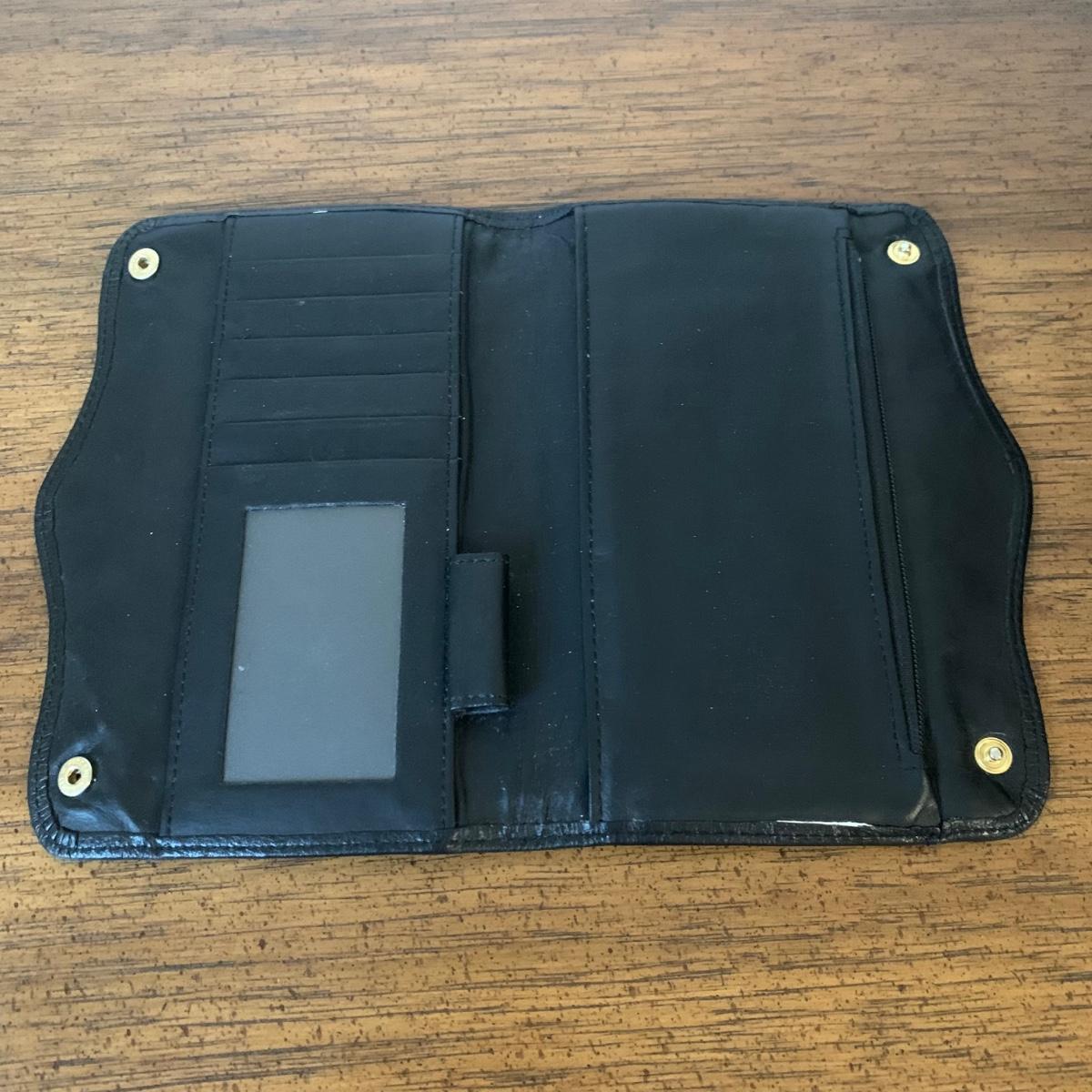 Four handbags and seven wallets. A few of the items are brand new with their original tags still attached. The handbags are by Patricia Nash, Liz Claiborne, Sakroots, and Bueno. The wallets are from Reflexions by Montana Silversmiths, Princess Gardner, Mundi, Rolfs, and Safekeeper. All but the two floral wallets appear to be leather or leather-like. The floral wallets have a vinyl-feel. The largest bag is the Bueno. It is about 18” wide and 14” tall. Each of the items in this collection appear to be in good to like new condition. The Patricia Nash shows some wear on its exterior.