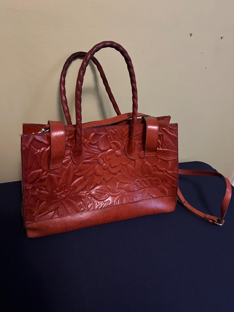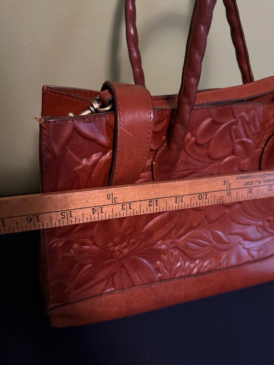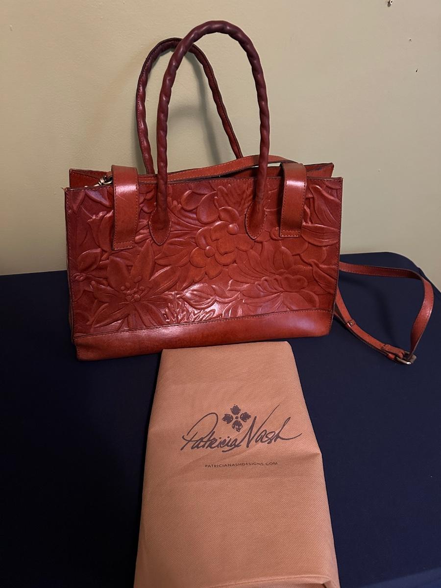 PATRICIA NASH LUCETTA COMPUTER TOTE TOOLED LEATHER HANDBAG WITH ORIG STORAGE BAG LARGE AND BEAUTIFUL 16" ACROSS 11" TALL