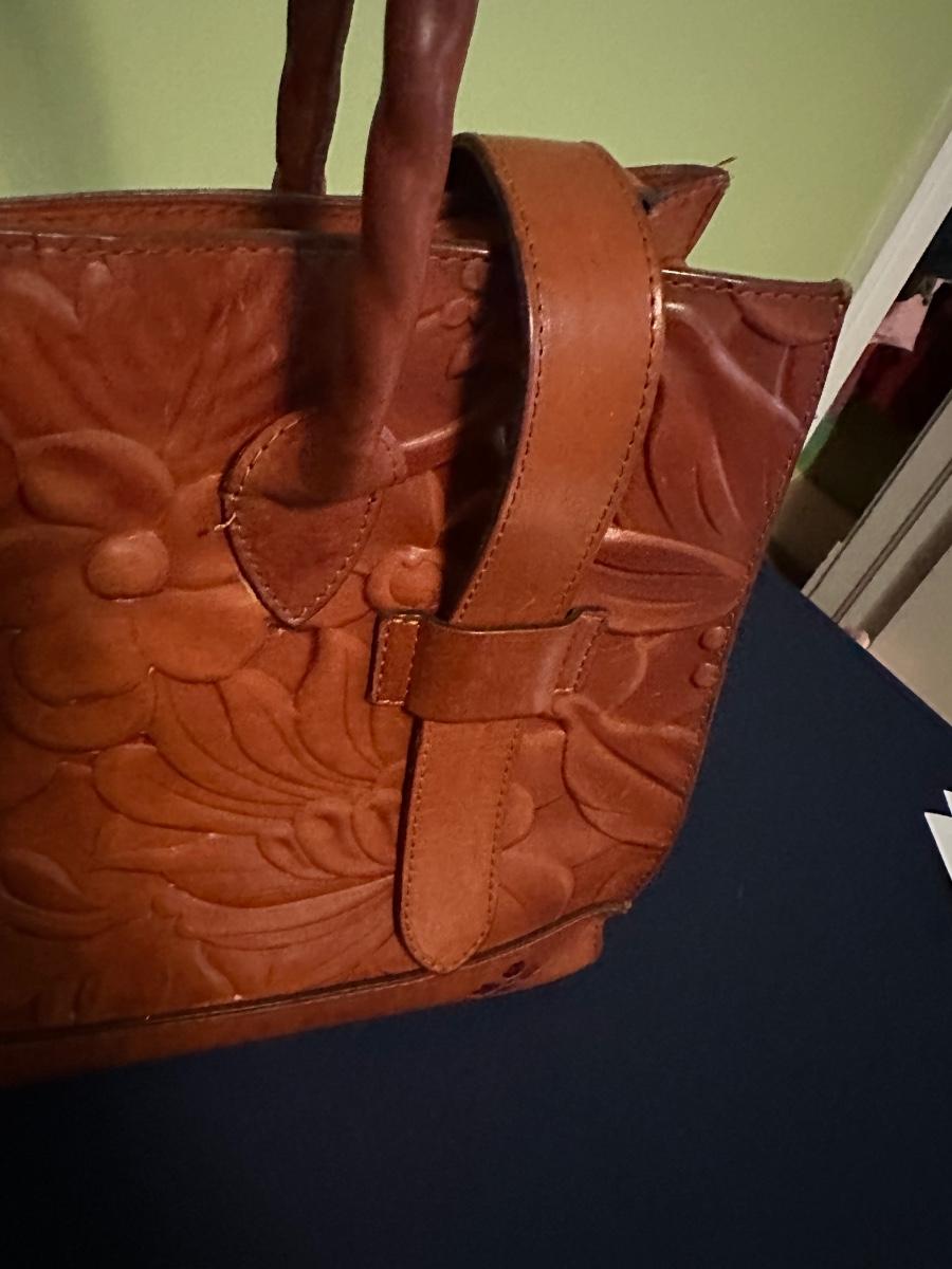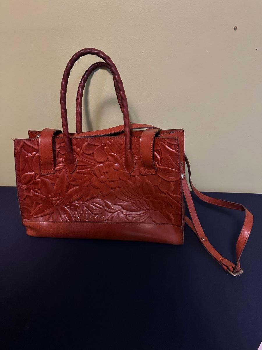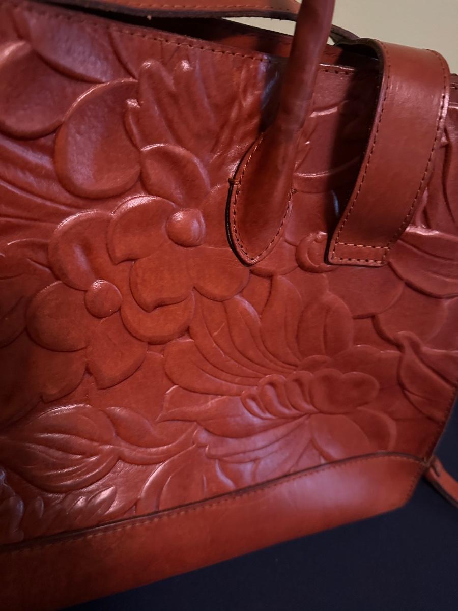 PATRICIA NASH LUCETTA COMPUTER TOTE TOOLED LEATHER HANDBAG WITH ORIG STORAGE BAG LARGE AND BEAUTIFUL 16" ACROSS 11" TALL