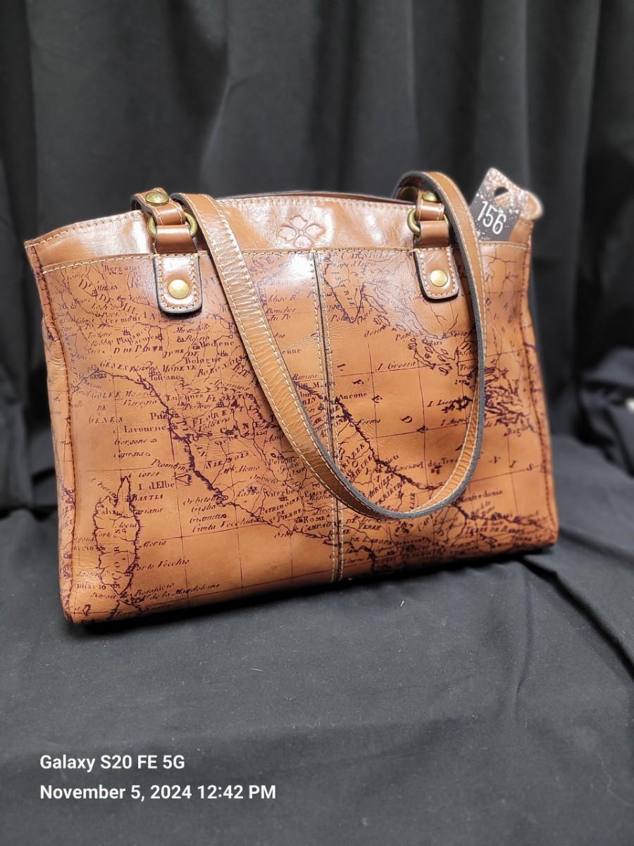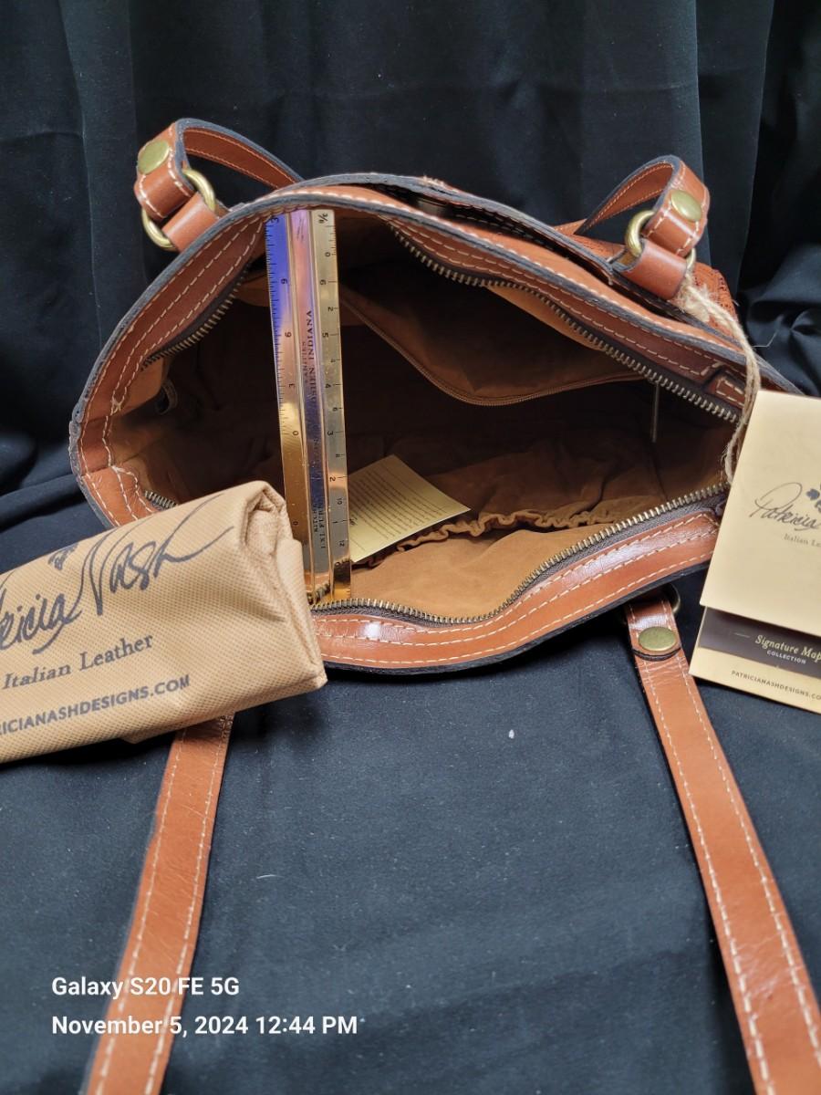 Leather purse with dust bag. 13.5 inches by 9 inches . 2 side slots.
