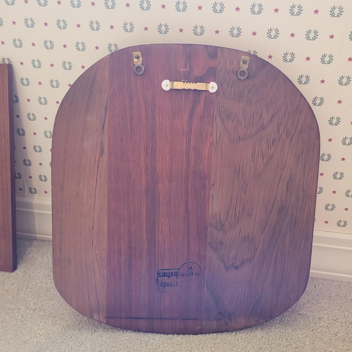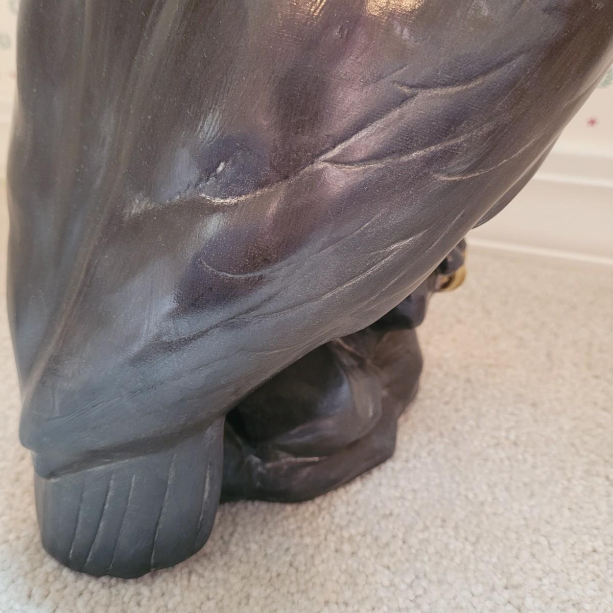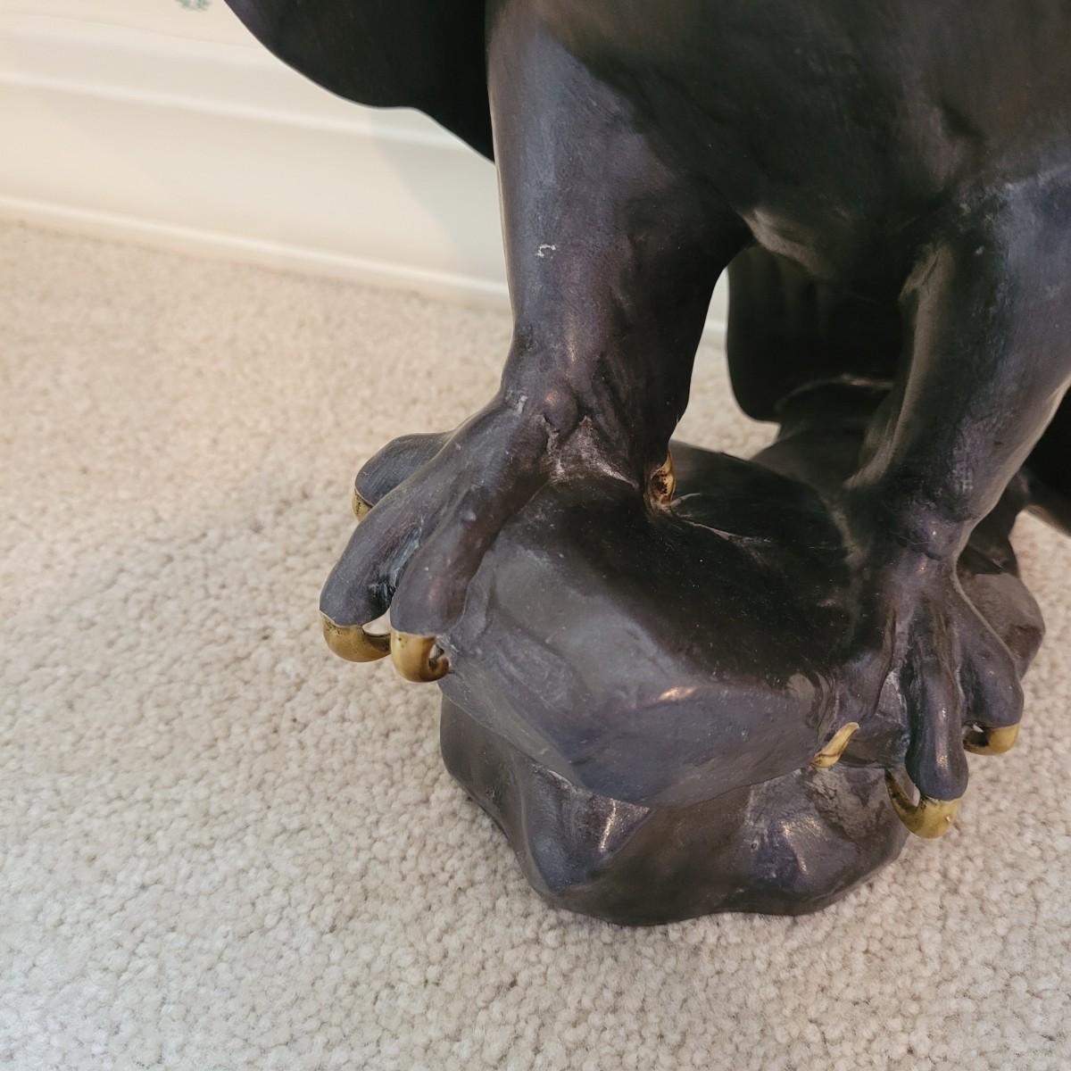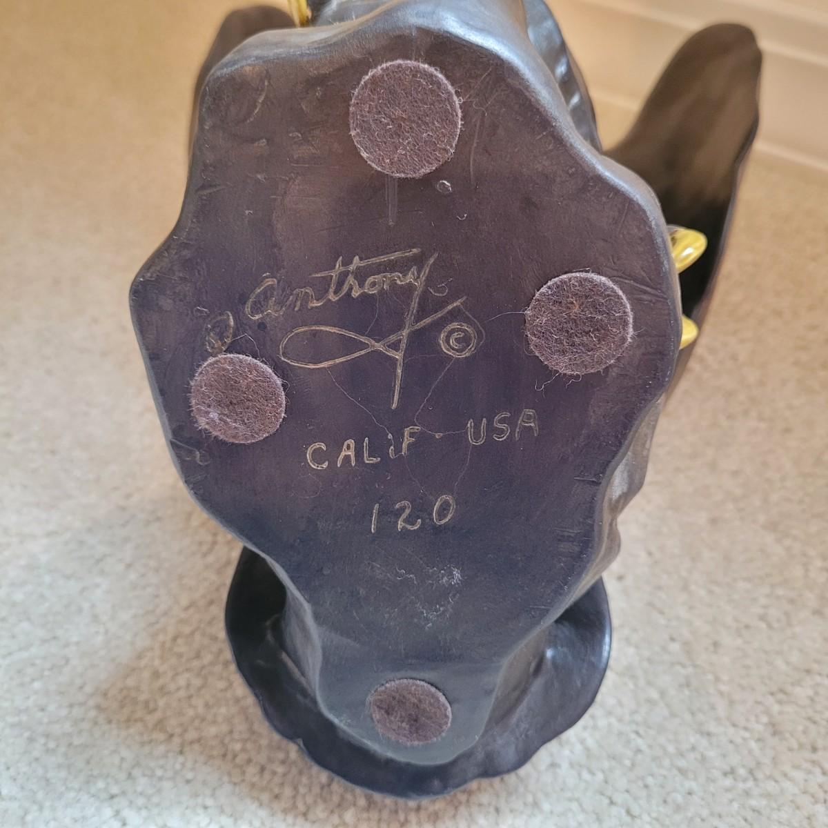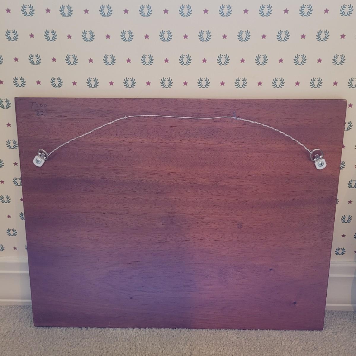 This collection of American Eagle decor includes a signed metal and ceramic sculpture, candle holder plaque, and federal eagle and shield panel with various stained wood inlays. Sculpture measures approximately 8”W (at widest part of wings) x 13”H. Shield panel approximately 12” x 15.5”. Shipping available.
