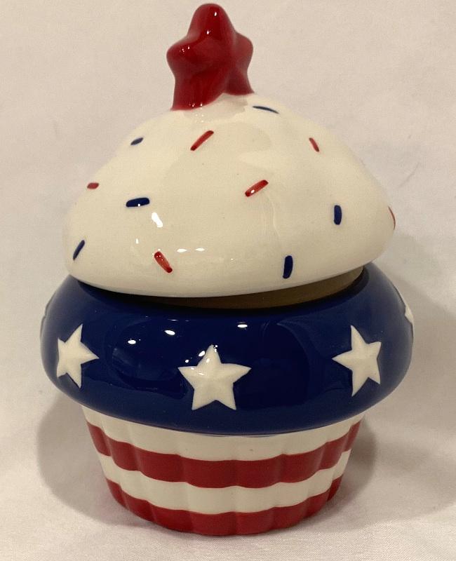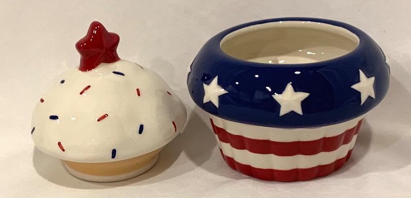 Patriotic Cupcake Ceramic Candle Holder - NEW