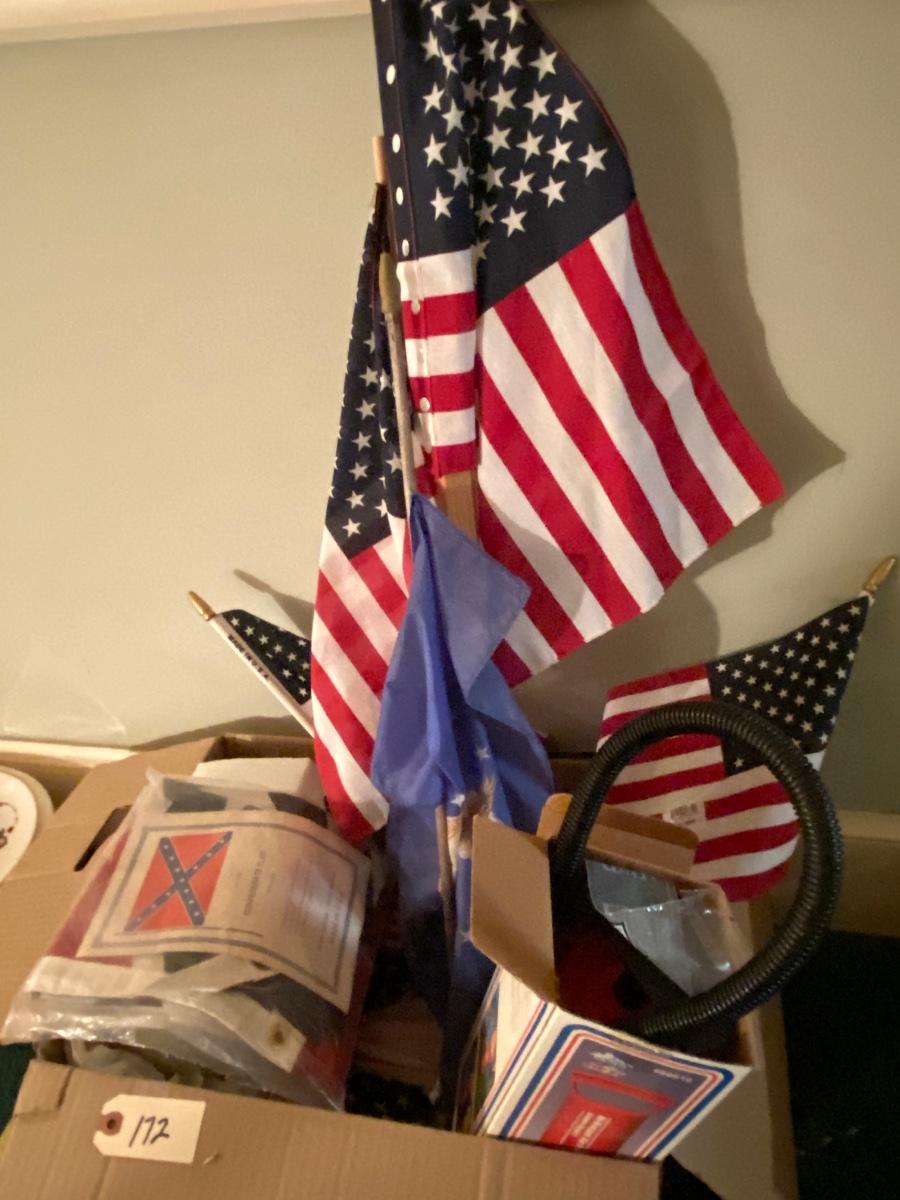 Misc Patriotic Items Includes Flags, Patches, Ollie North and More As Pictured